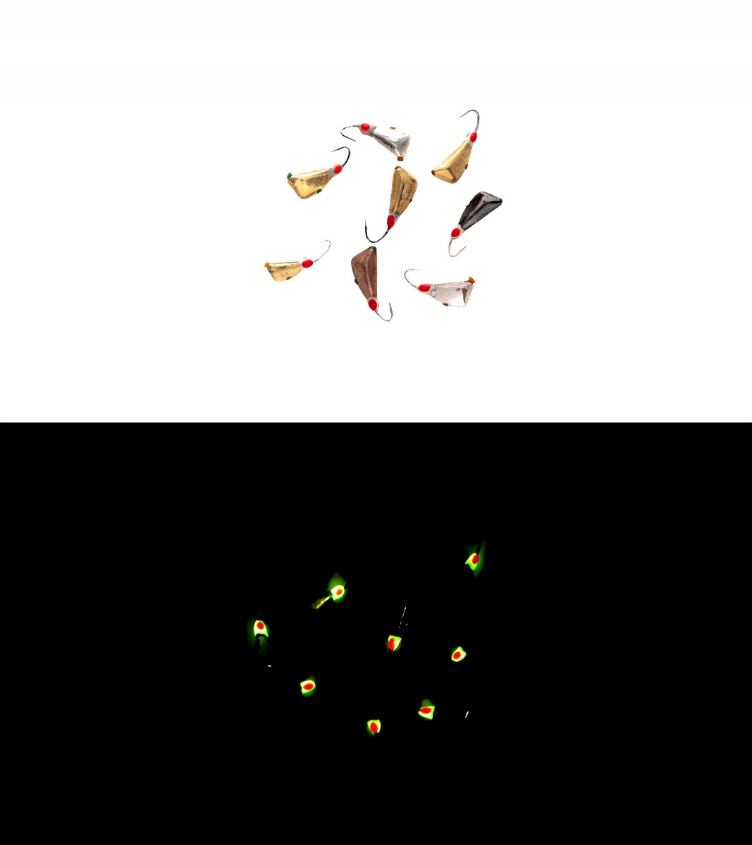 На цьому аукціоні представлено 5 мормишек, описаних нижче в різних кольорах, які можна побачити в наступному фотографія, вибрана випадковим чином.
