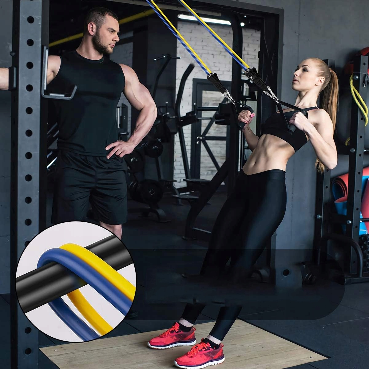 Набір тренувальних стрічок, що розвиваються з точки зору сили та якості. Використання 100% природного латексу, екологічно чистого, дозволяє отримати більшу силу та більшу стійкість до розтягування. Опір до знімків.