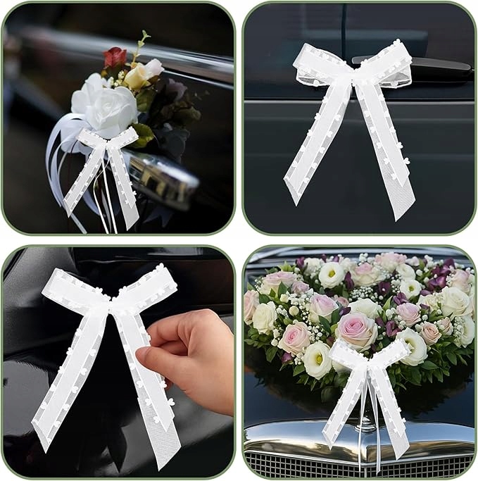 - Стильна весільна прикраса - ці білі весільні бантики-машини стануть ідеальним доповненням до весілля вашої мрії. Незалежно від того, як прикраса на спинках стільців, букетах квітів чи як фон - вони створять романтичну атмосферу під час оформлення весілля.