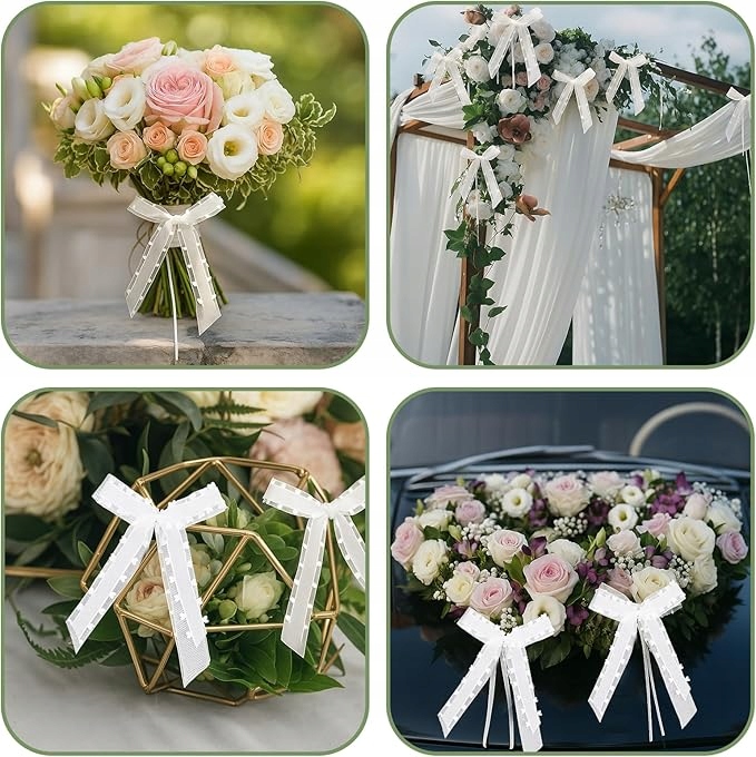 НАБІР З 50 БІЛИХ БАНТИК ДЕКОР ВЕСІЛЛЯ ДЕНЬ НАРОДЖЕННЯ
