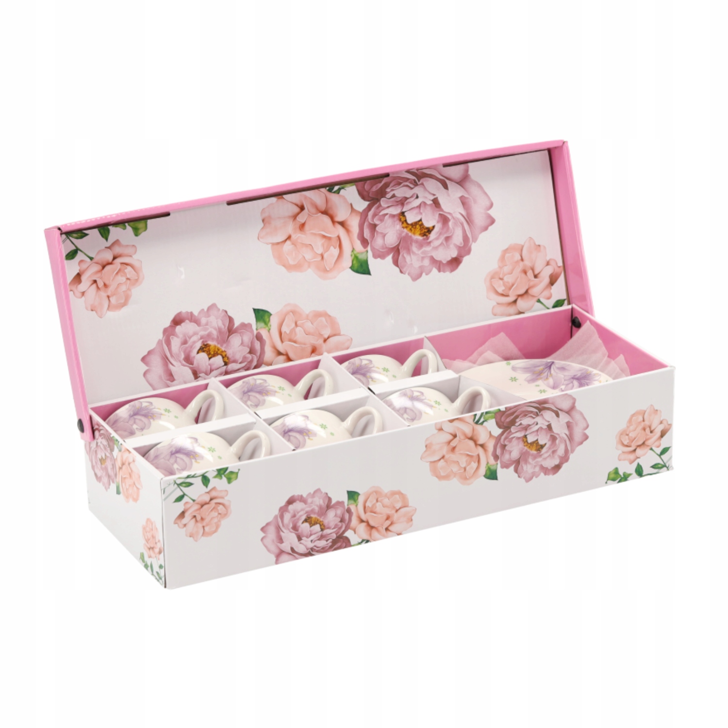 Елегантний набір з 6 чашок з блюдцями з порцеляни. Має сучасну форму та оригінальне оздоблення. Ідеально підходить для щоденного використання, а також для особливих випадків. У нас є як посуд з делікатними візерунками, так і з більш виразними візерунками, тож ви зможете підібрати ідеальний сервіс для себе.