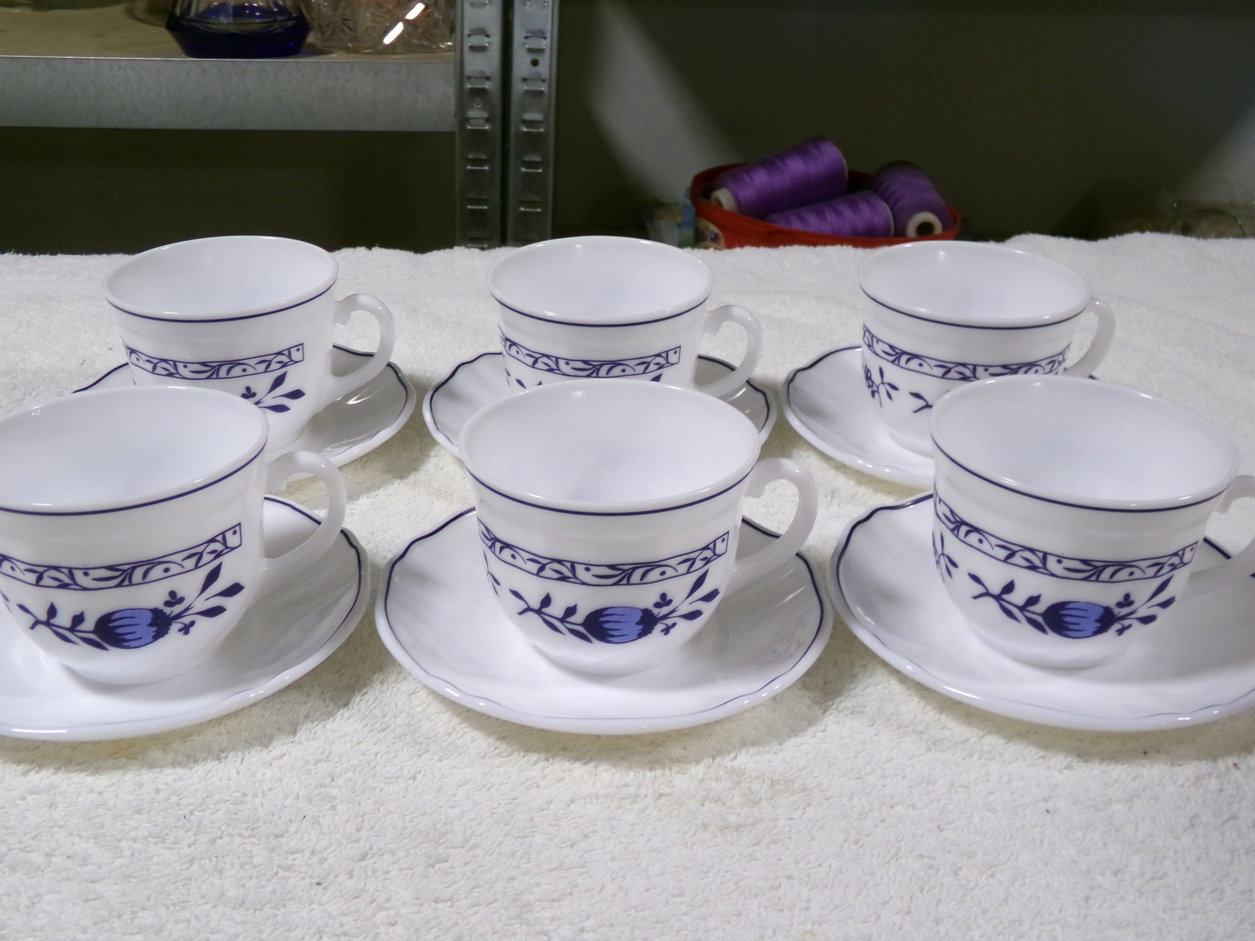 Чудовий набір з 6 чашок із загартованого скла, діаметр 8,5 см, висота 6,5 см, діаметр блюдця 13 см, вага 1,85 кг. Дуже хороший стан, без пошкоджень.