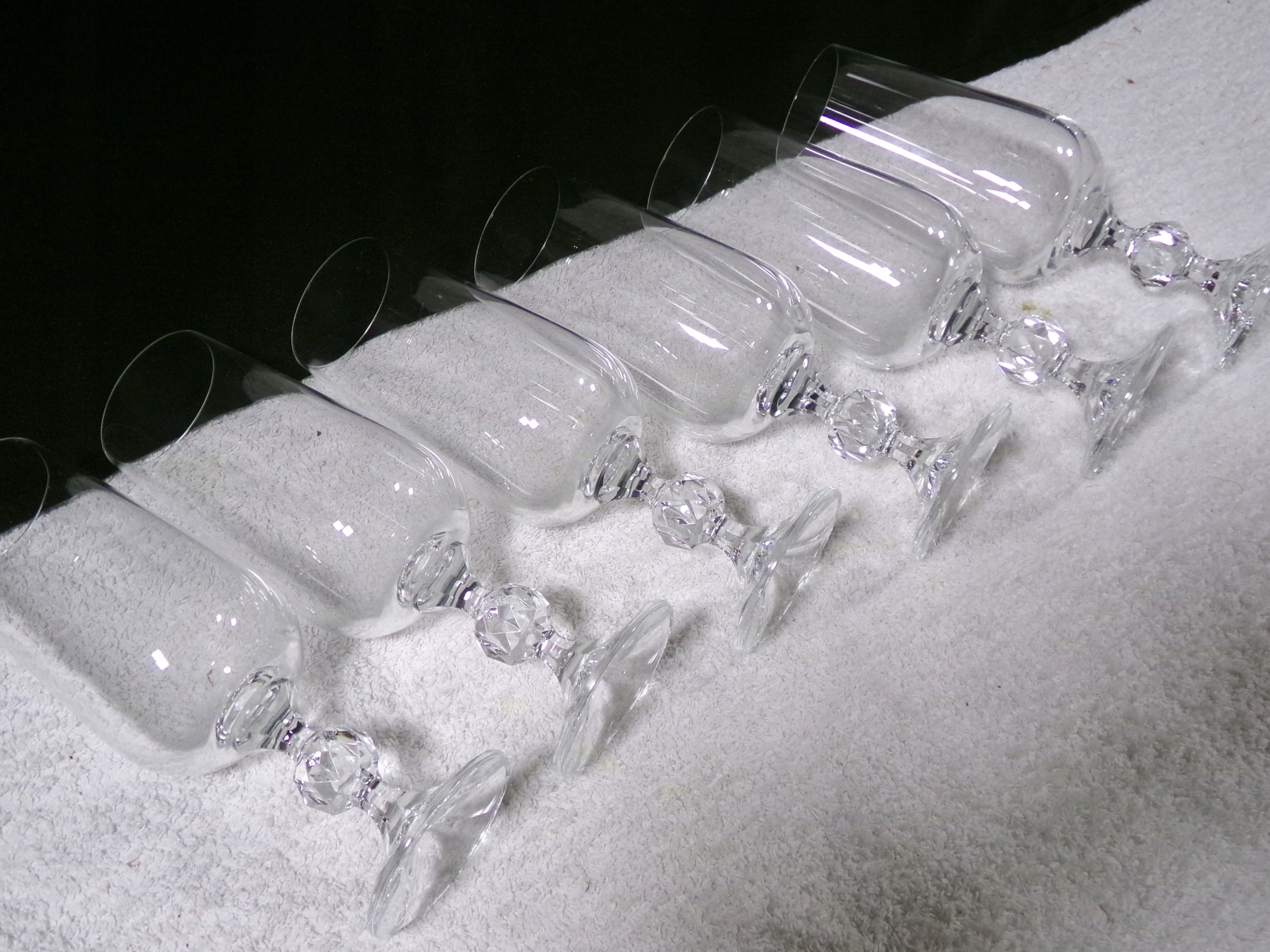 Набір із 6 кришталевих келихів, висота 19,5 см, діаметр центру 5,5 см, ємність 350 мл, вага 1,28 кг. Дуже хороший стан, без пошкоджень.