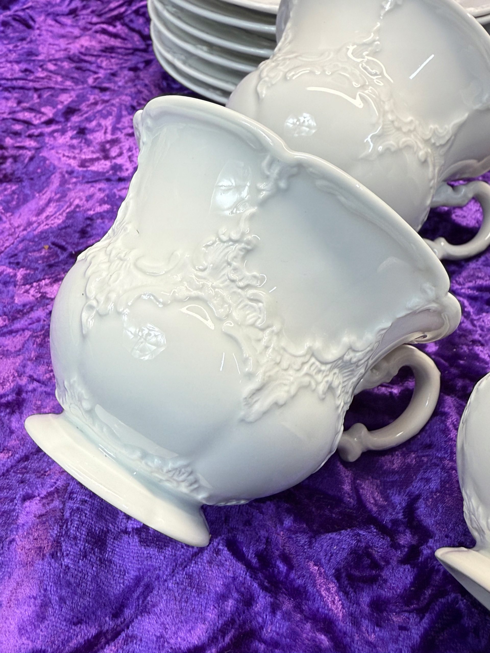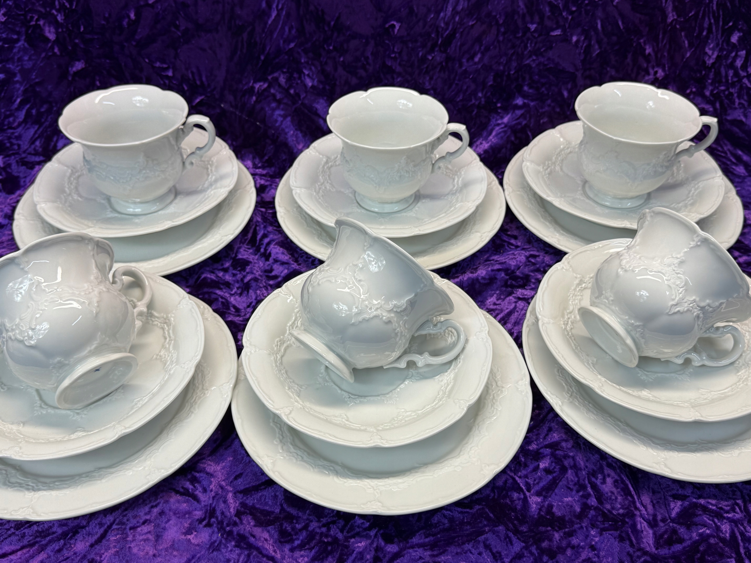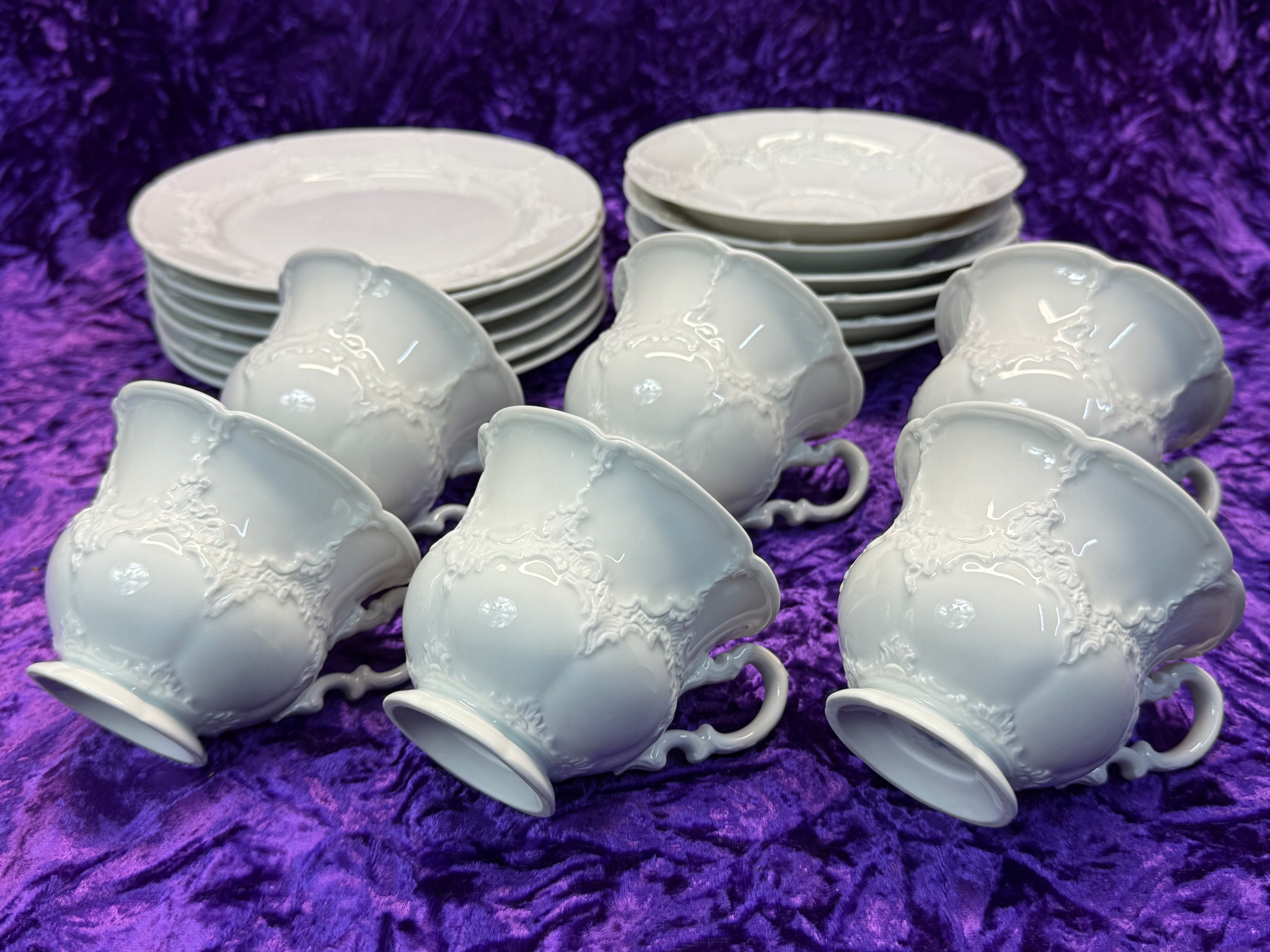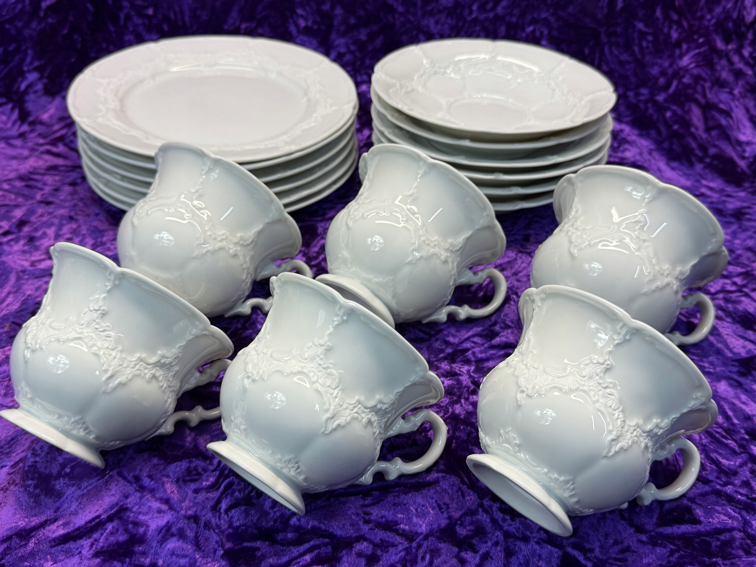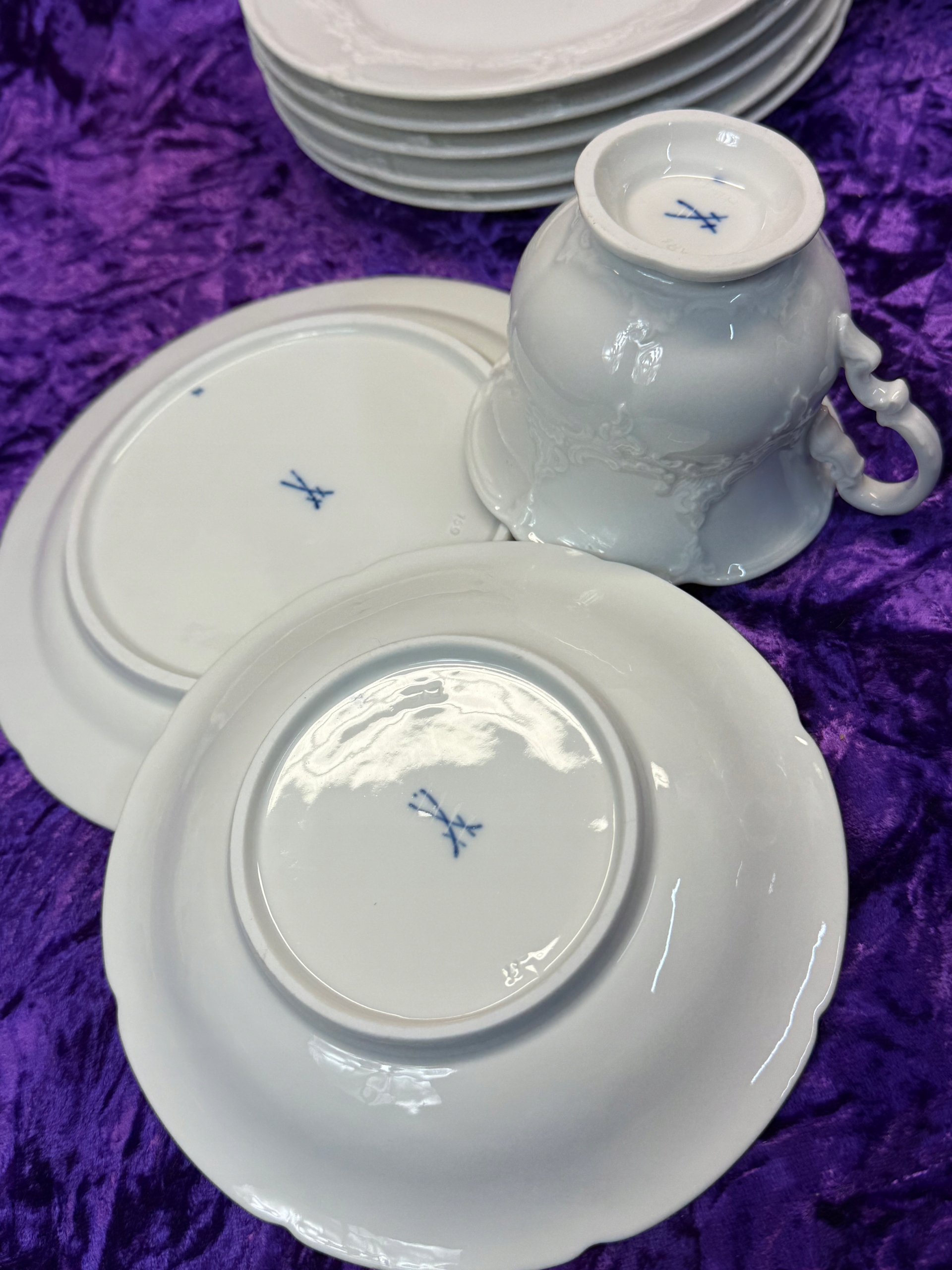 Набір із 6 великих сервізів для сніданку з королівської фабрики в Мейсені. Біла порцеляна B-Form з опуклими рельєфами.