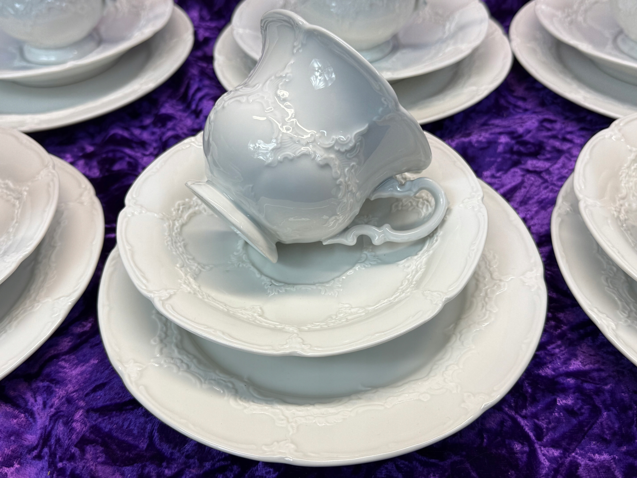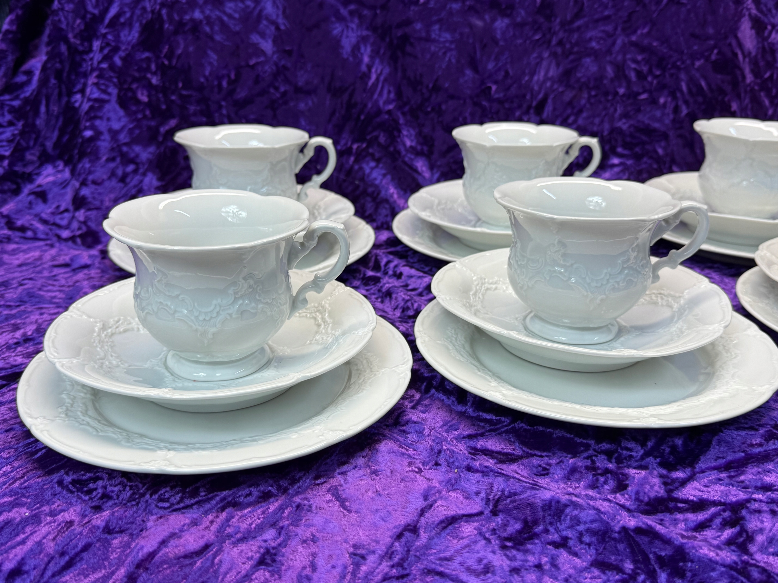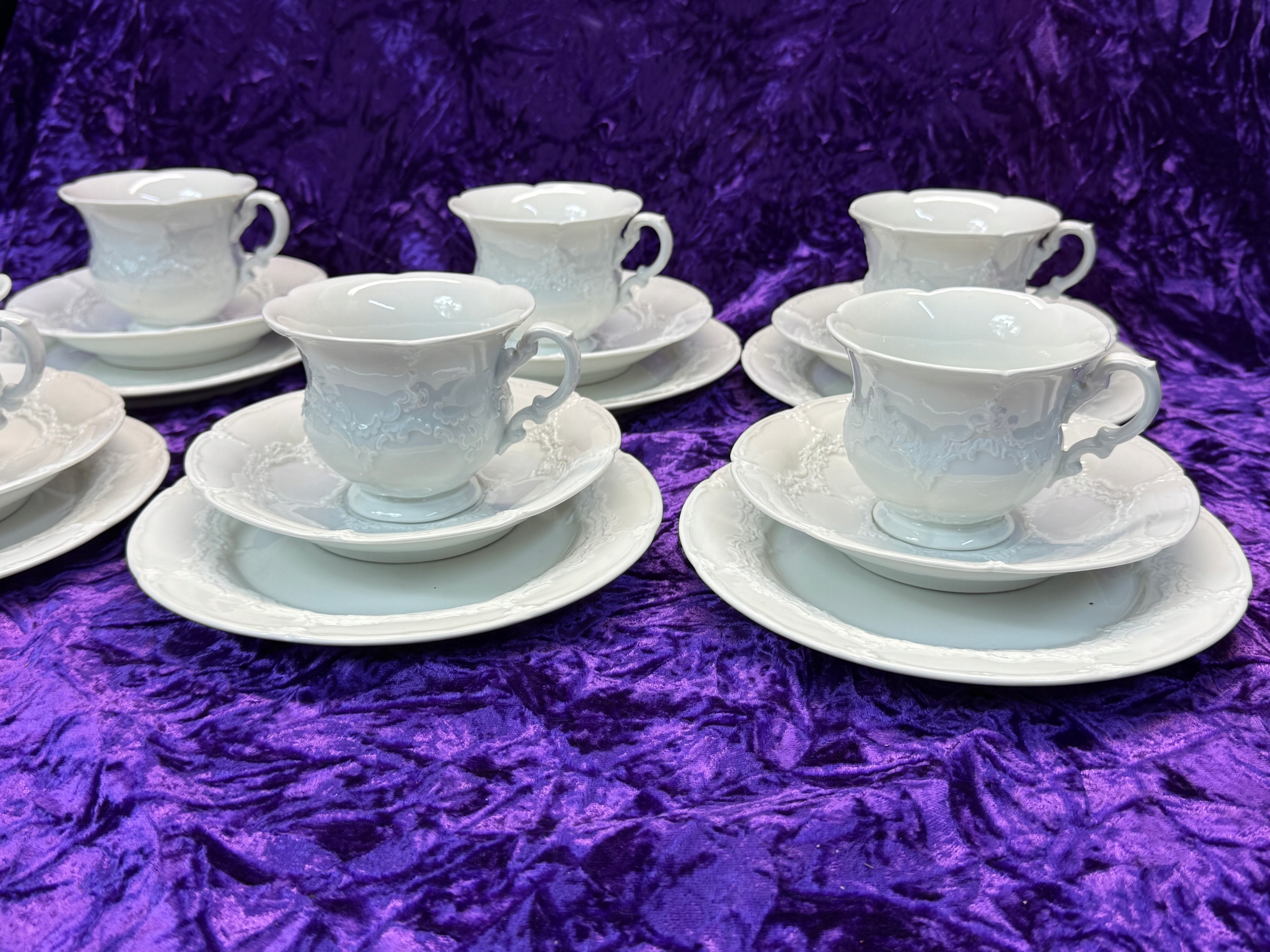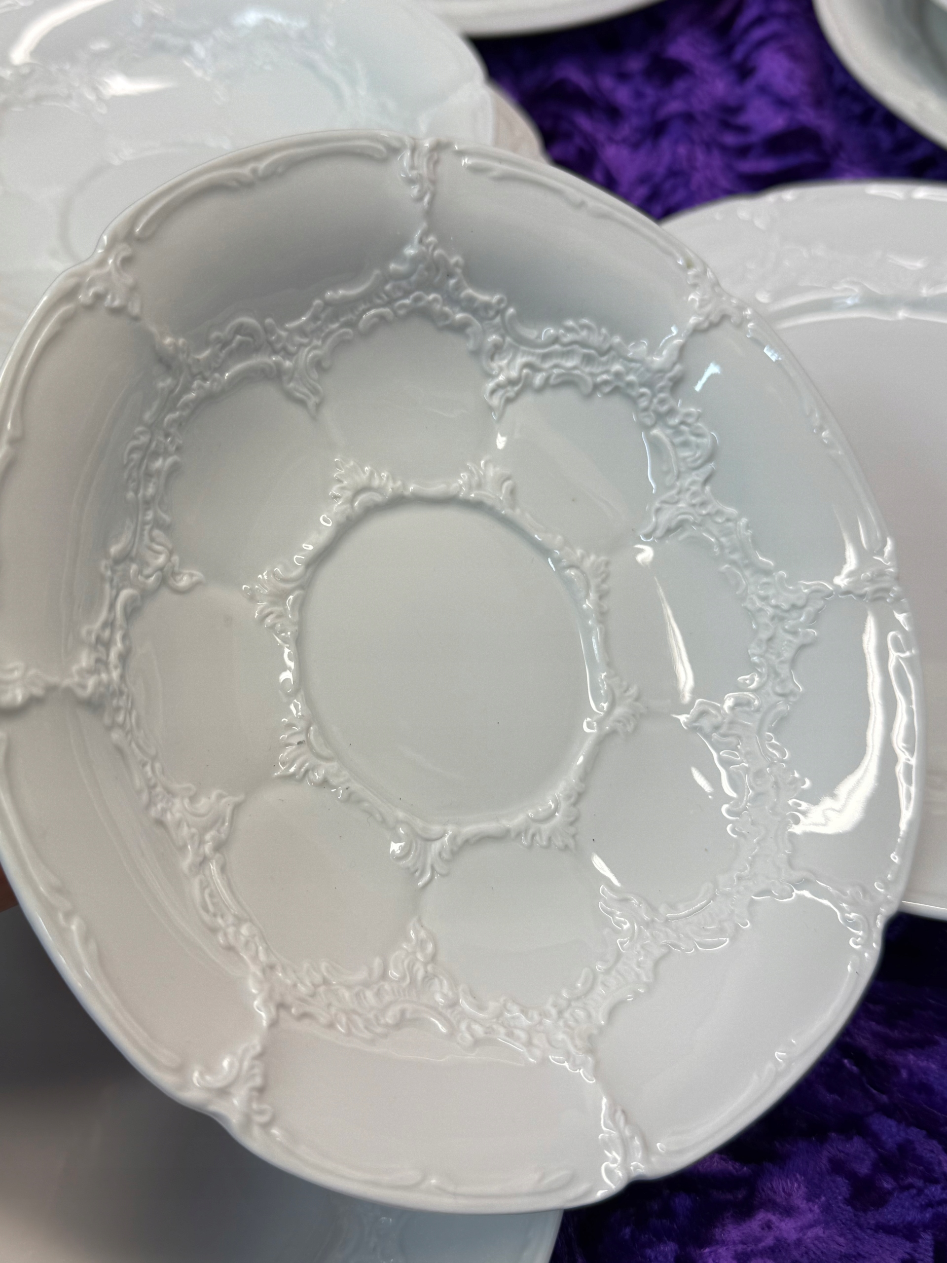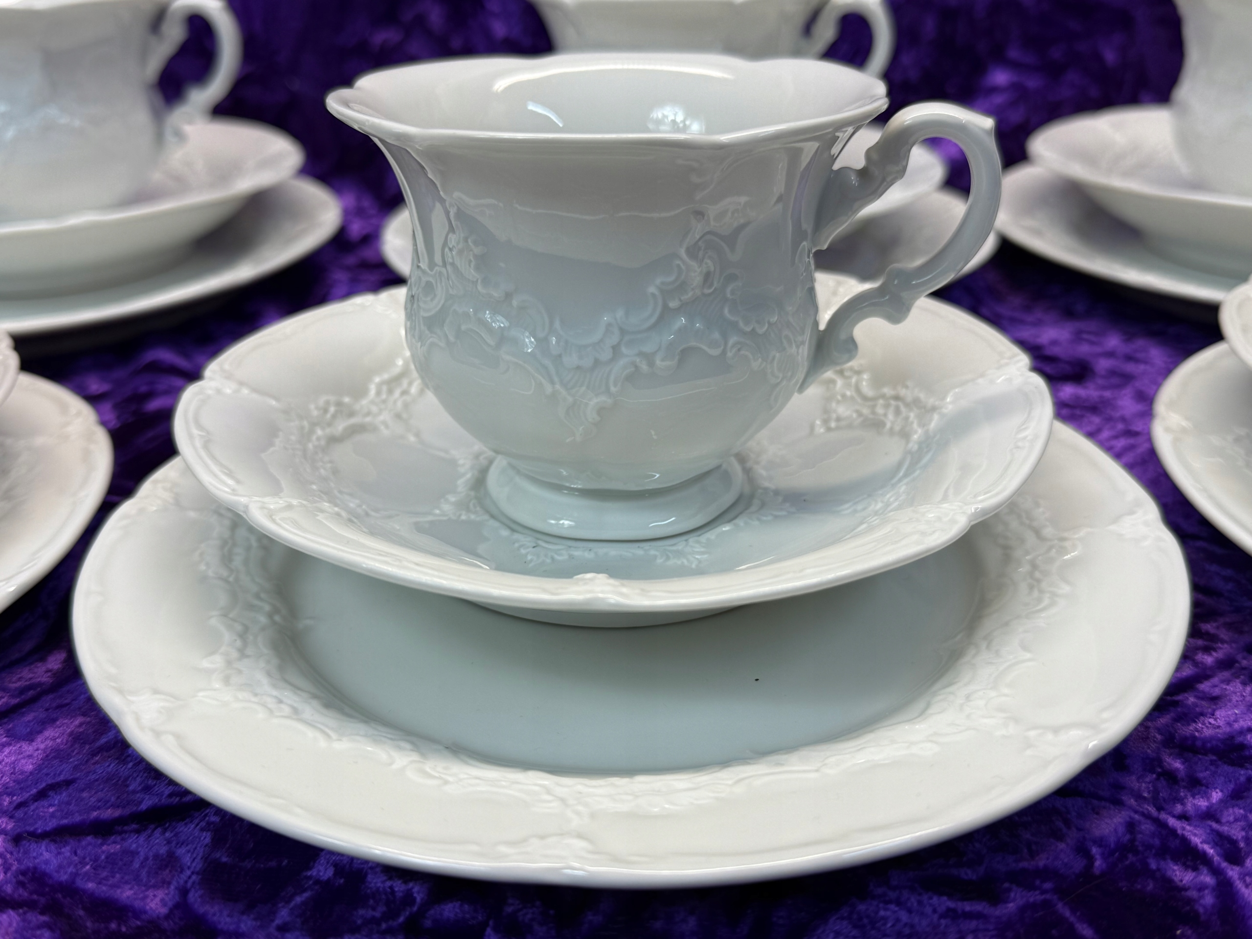 Набір із 6 великих сервізів для сніданку з королівської фабрики в Мейсені. Біла порцеляна B-Form з опуклими рельєфами.