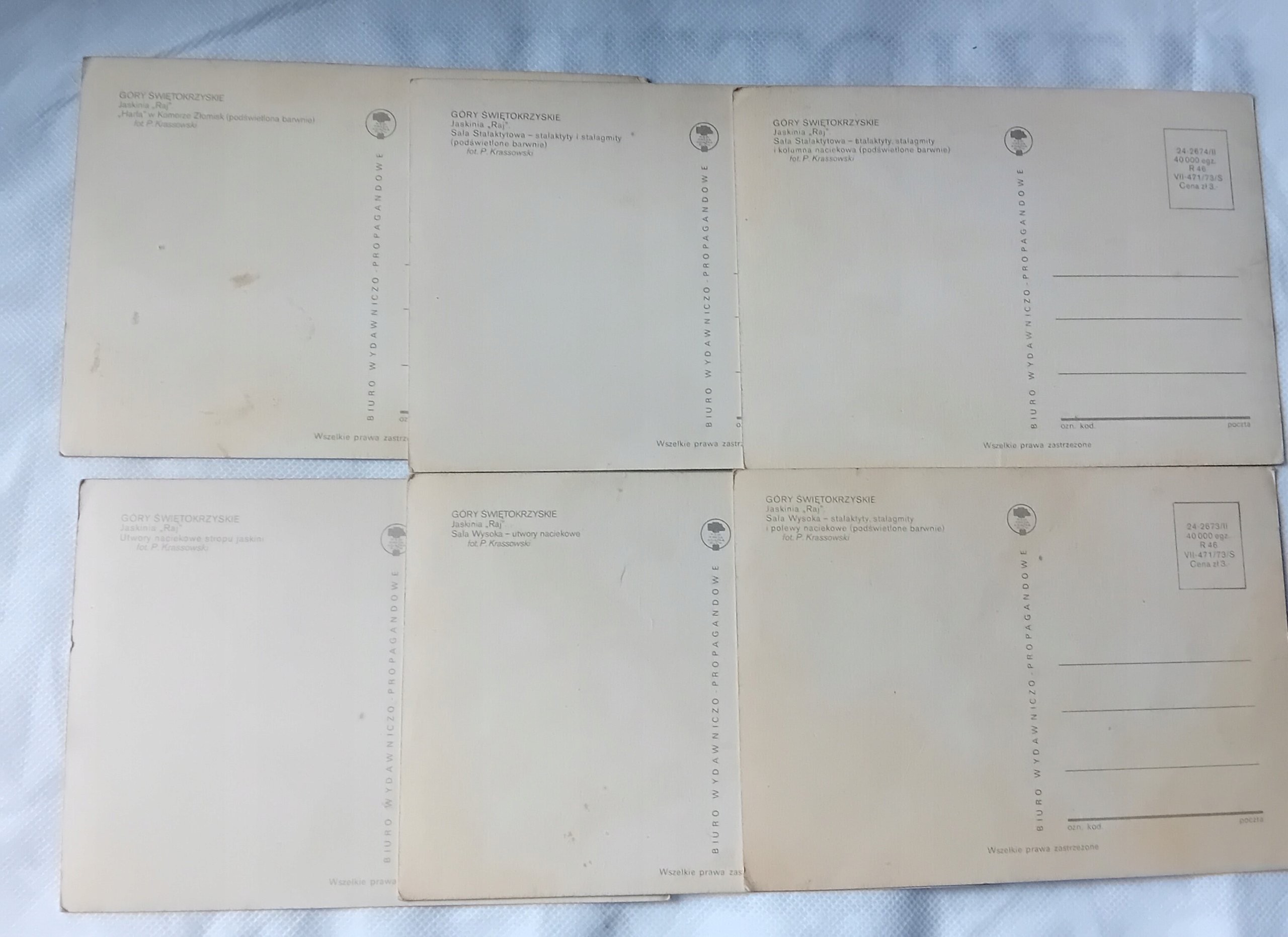 Набір з 6 листівок : Свентокшиські гори, печера Рай. КАВ, 1973 р.