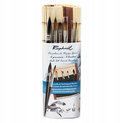 Вуличний набір Raphael, бамбуковий килимок для зберігання, 6 пензлів Raphael Precision і Softaqua.