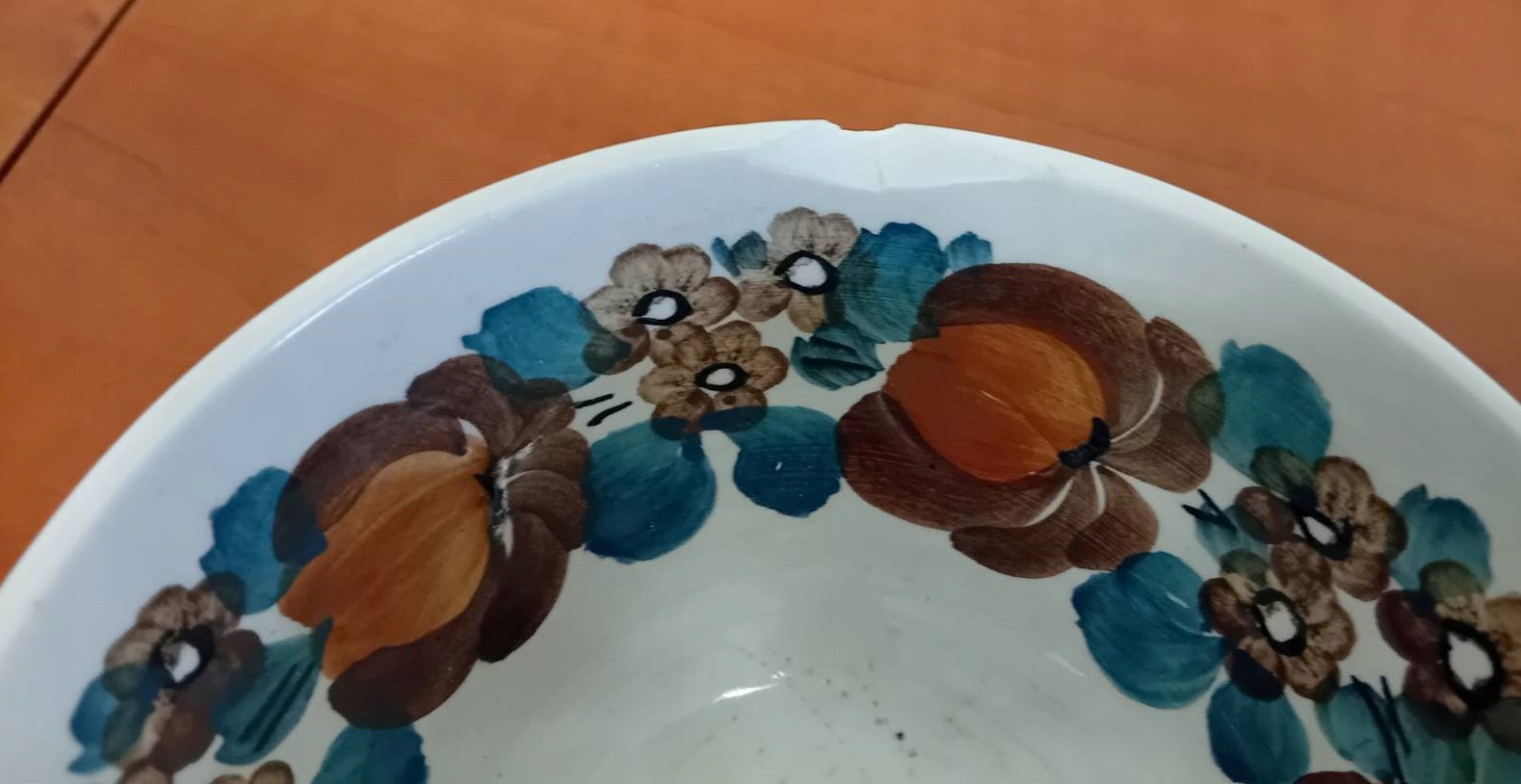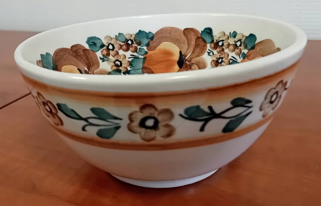 Набір з глазурованого фаянсу, прикрашений різнокольоровими квітами оранжевого, зеленого та коричневого кольорів ø 14 см