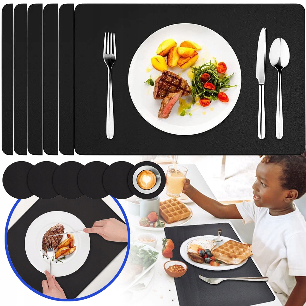 НАБІР З 6 ШКІРЯНИХ НАСТОЛЬНИЦІВ ТА ПІДСТАВОК, МОЖНА МИТИСЯ, НЕ КЛИЗКЕ