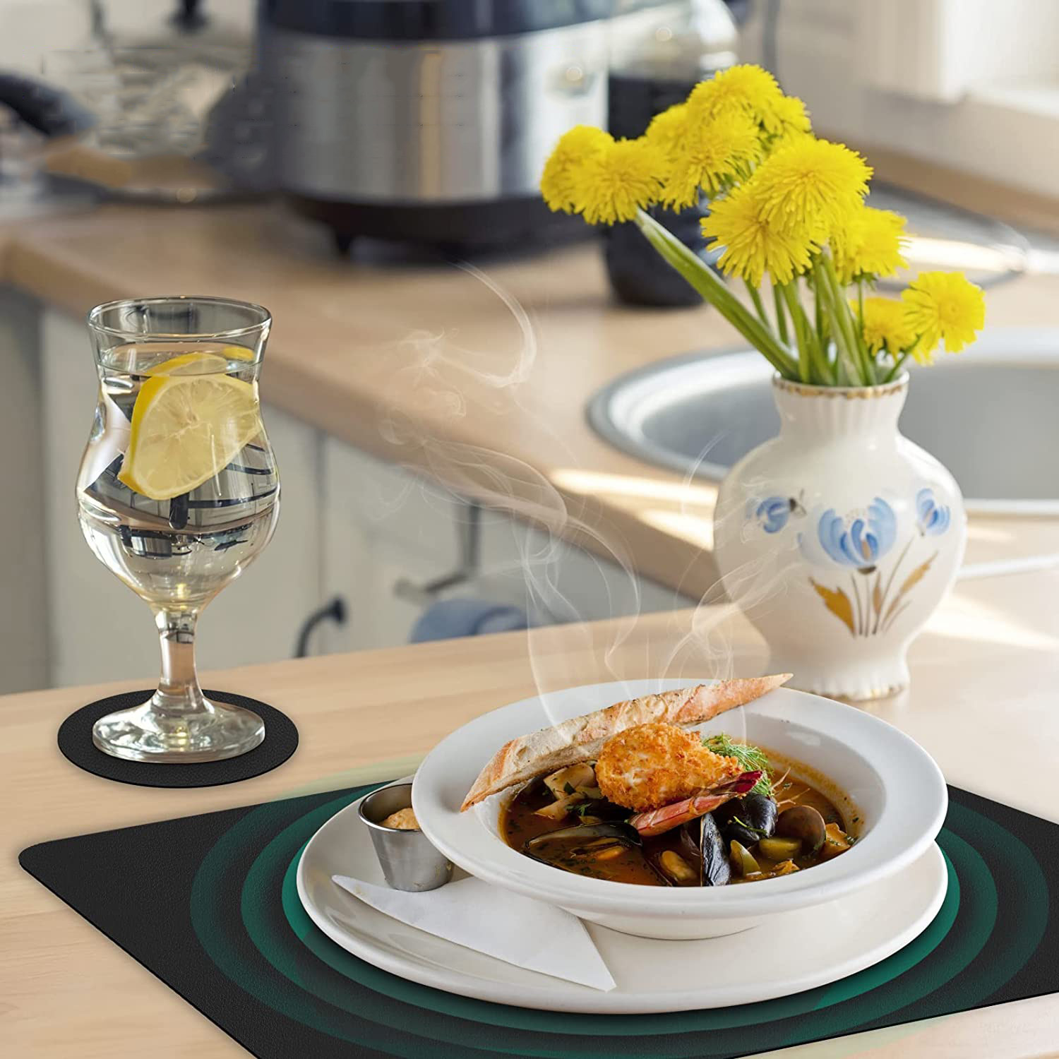 Килимки зі шкіряним виглядом, які можна мити, стійкі до високих температур і довговічні для щоденного використання. Це гарне екологічне кухонне приладдя, стійкі до високих температур обідні столи до 80°C.