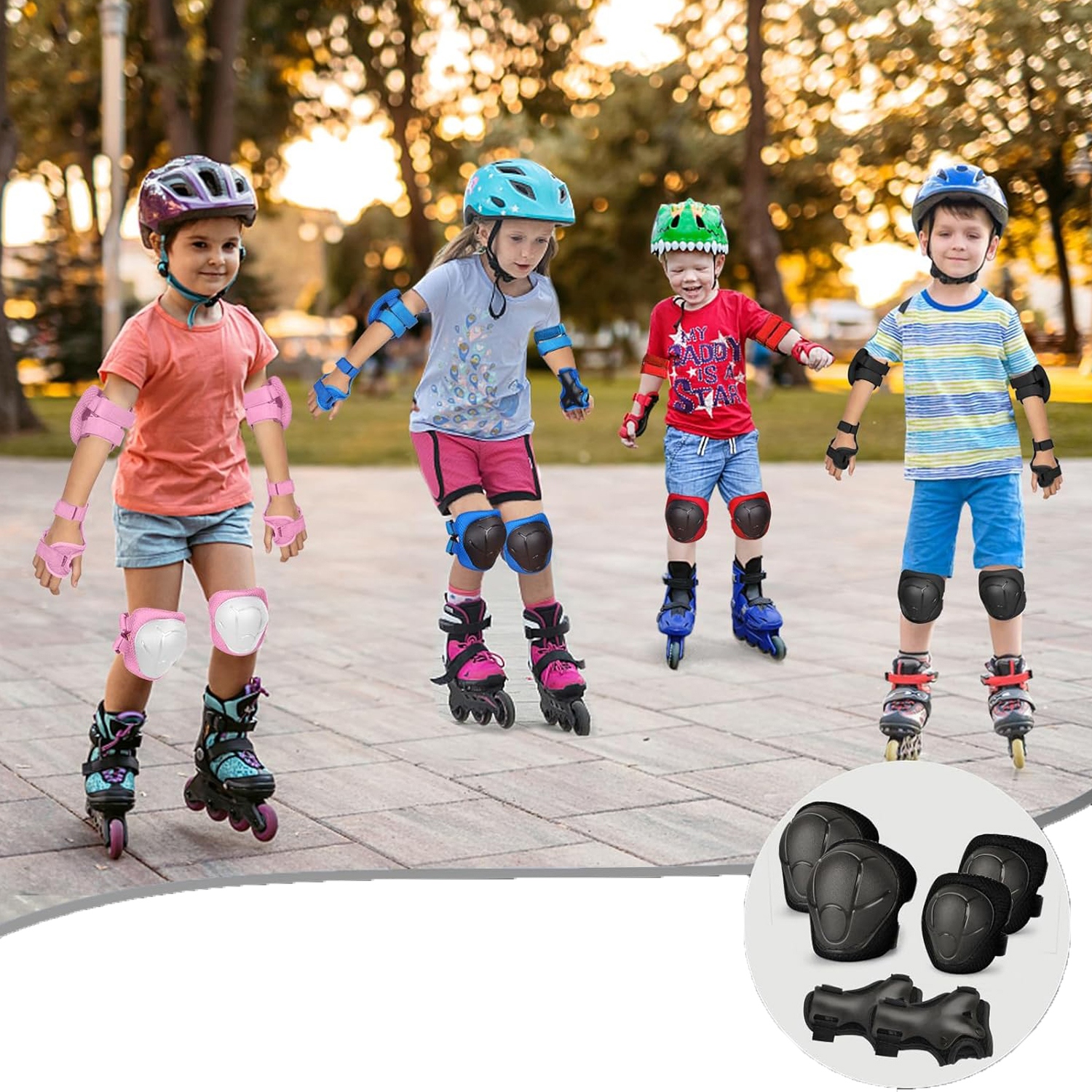 🛹Забезпечує кращий захист для колін, лікті та зап’ястя, що дозволяє дітям грати дико, будучи добре захищеними.