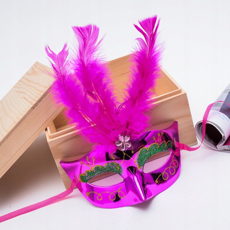 Чарівна венеціанська маска - це привабливий аксесуар у справді елегантному стилі, ідеально підходить як елемент вашого вбрання на вишуканому карнавальному балу, новорічній вечірці або як цікаве доповнення до дівич-вечора.Фіолетова маска Віолетта, прикрашена сріблясті стрази та довге страусине пір'я - найякісніше виконання! Професійна карнавальна маска. Ззаду зав'язується стрічкою.