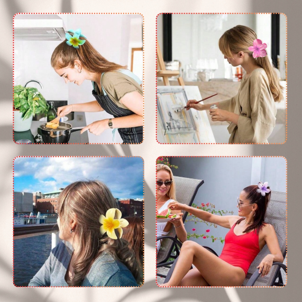 ✅ Форма квітки та тропічні кольори роблять ці затискачі ідеальними для різних випадків - від пляжних днів, літніх фестивалів до вечірніх зустрічей. Універсальний дизайн і легкість дозволяють комфортно носити цілий день і водночас додають зачісці неповторний характер.