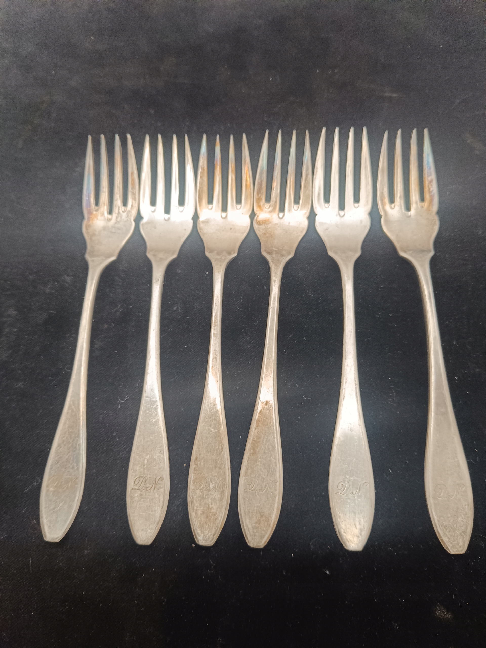 Ми представляємо набір з 6 рибних вил. Платер на білому металі. Виробник R. plewkiewicz напис на кожну тему: BM (білий метал) R.Lewkiewicz Prima. Стокові прилади містить гравюру: D. N. Умова, як на малюнках як дуже хороші. У деяких п’єсах потертості з’являються в характерному місці контакту з столицею, довжина виделків становить 19 см. Ласкаво просимо
