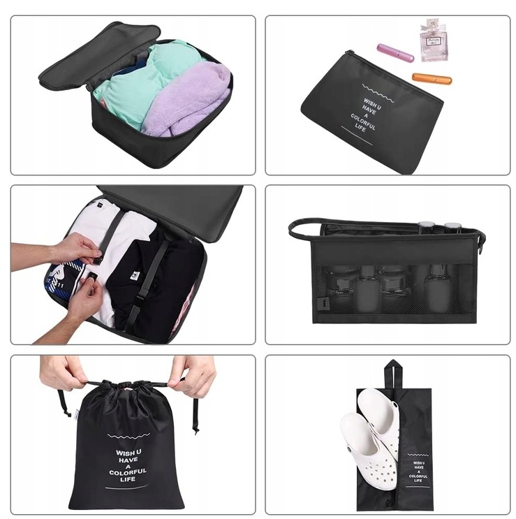 Сумки можна використовувати, наприклад, для взуття, футболок, штани, нижню білизну, зарядні пристрої та речі для прання.