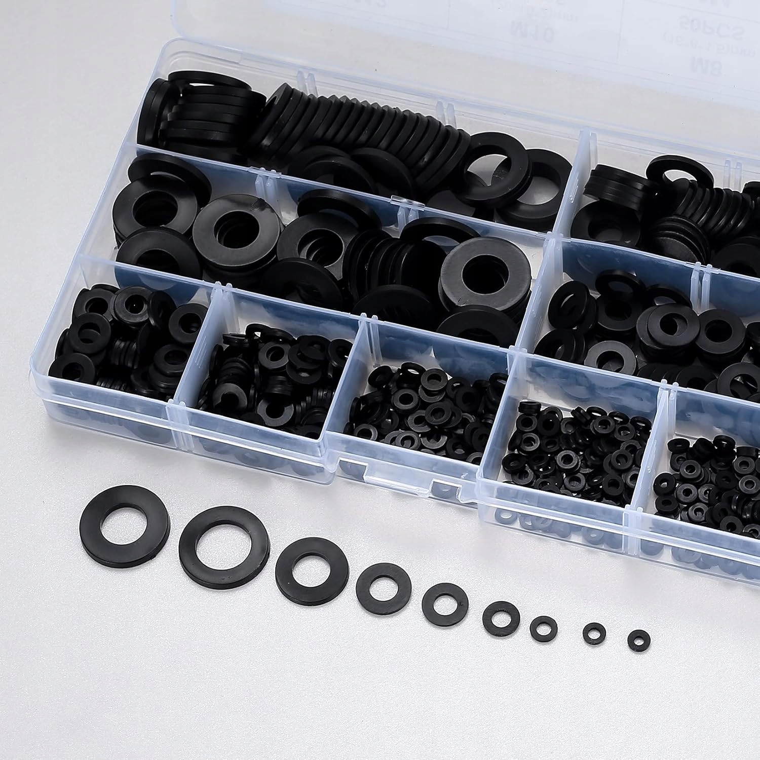 набір із 700 штук плоских нейлонових прокладок є ідеальним рішенням для захисту гвинтів та гайок від пошкодження поверхні, усунення слабкості та підвищення стабільності з'єднань. Зроблені з високоякісного нейлону, їх характеризується стійкістю до корозії, зносу та хімікатів, що робить їх ідеальними як для домашніх, так і для промислових застосувань.