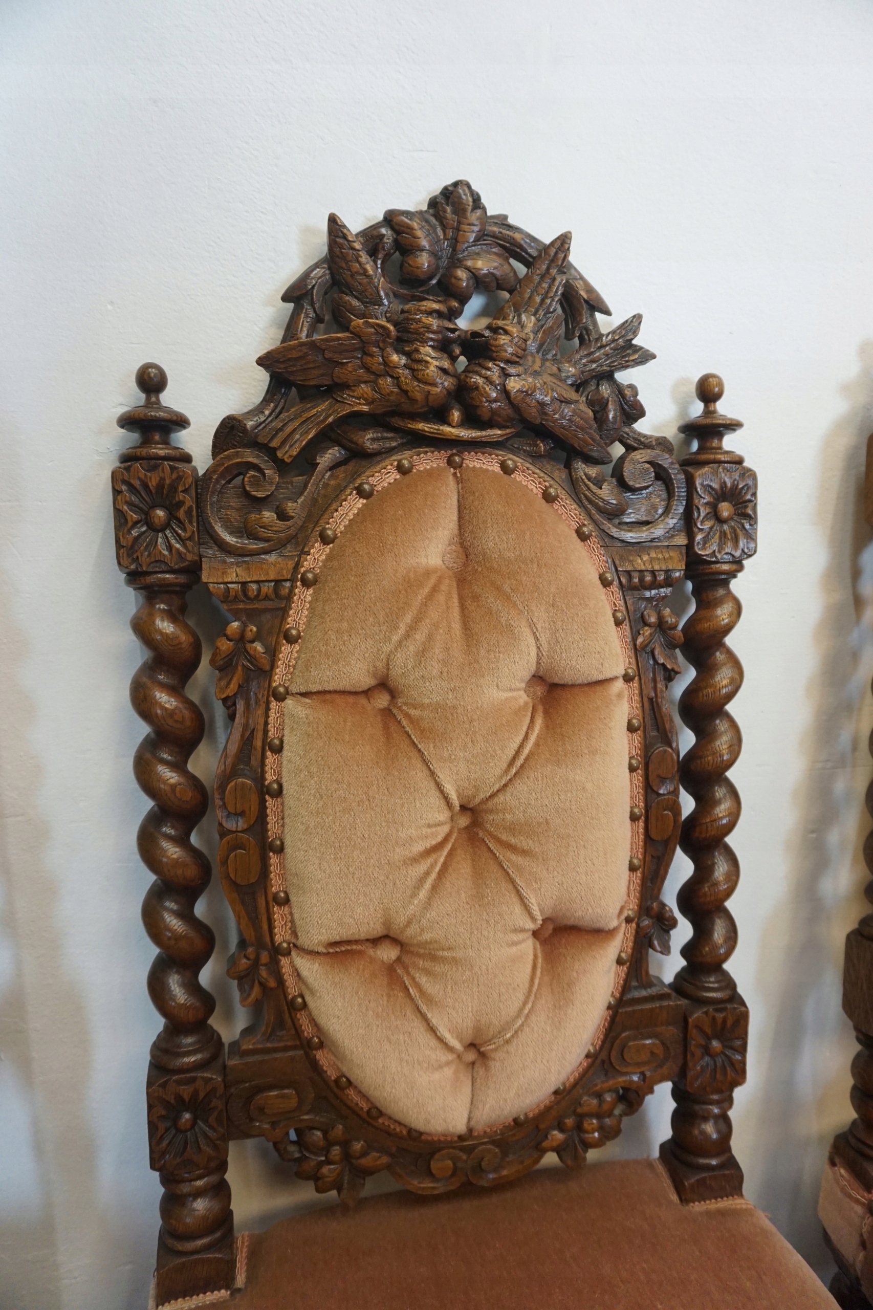 Набір з 8 багатих різьблених стільців з нео -рененськими голубами