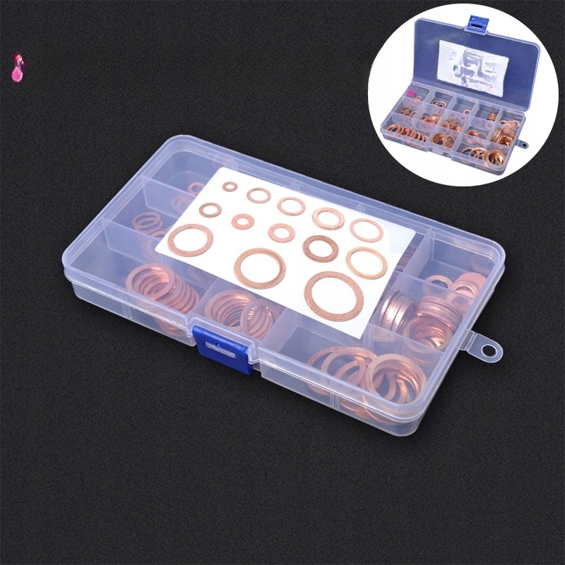 ✅80 шт. Набір мідних шайб масляного піддону. Усе міститься в компактному та прозорому пластиковому корпусі з відсіками.