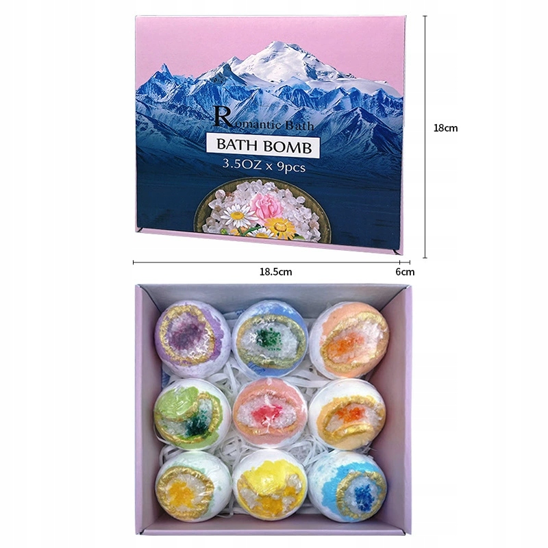 подаруйте собі або близькій людині момент відпочинку та розкоші! Набір із 9 різнокольорових бомбочок для ванни з кришталевою обробкою — ідеальна пропозиція для відпочинку після довгого дня, домашнього СПА чи унікального подарунка.