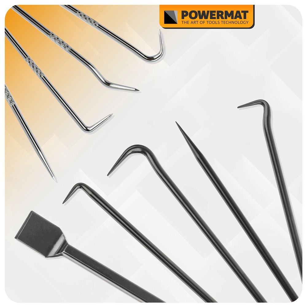 Набір дозволяє точно знімати ущільнювачі, ущільнювальні кільця та невеликі монтажні елементи завдяки точному профілюванню наконечників.