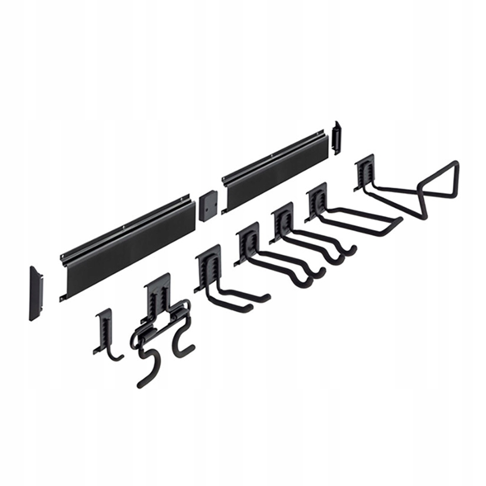 Гаражні гаки Goliat кріпляться до стіни за допомогою рейки, пригвинченої дюбелями та шурупами. Вони дозволяють функціонально використовувати простір стіни, зручно розміщуючи різний садовий інвентар, спортивний інвентар та електроінструменти. Вони чудово підтримують порядок у вашій майстерні чи гаражі. Різноманітні типи гачків дозволяють зберігати там практично будь-що.