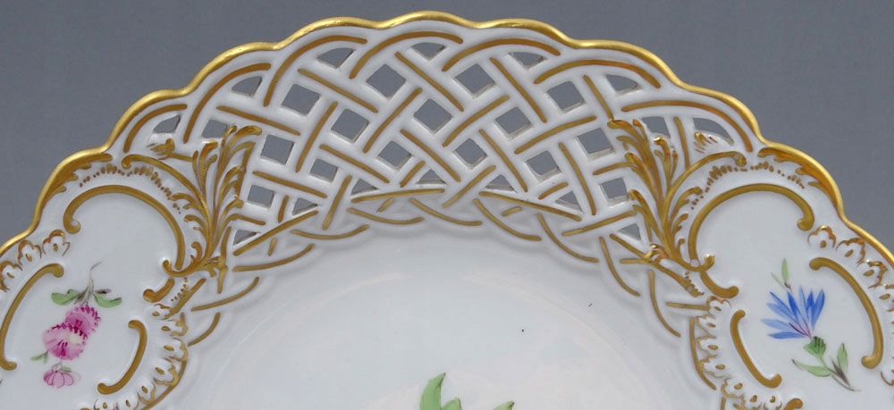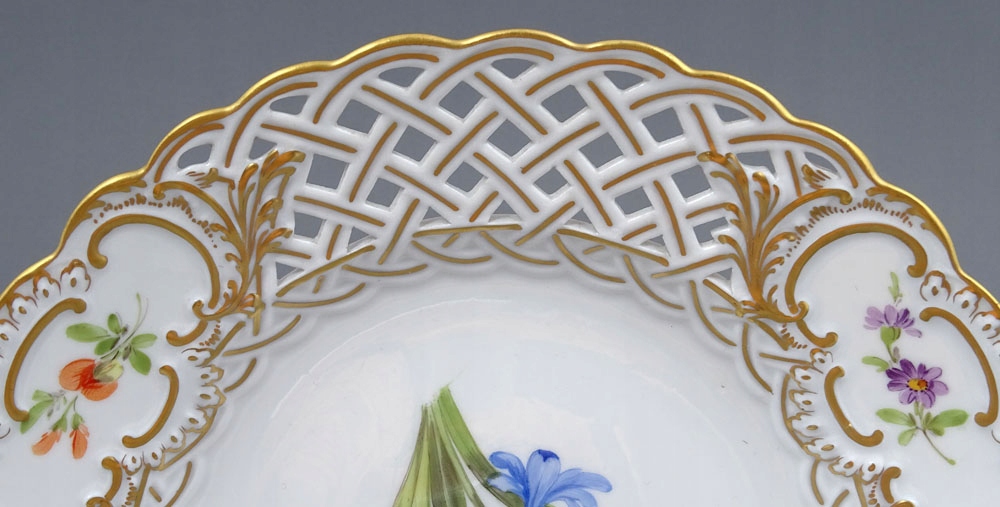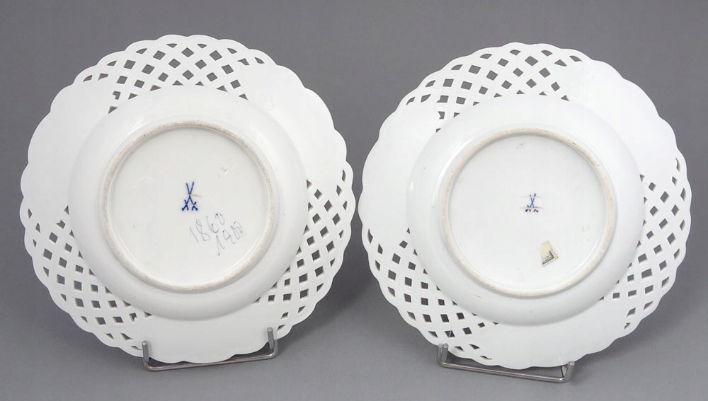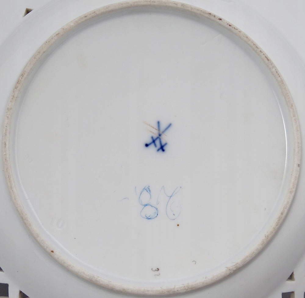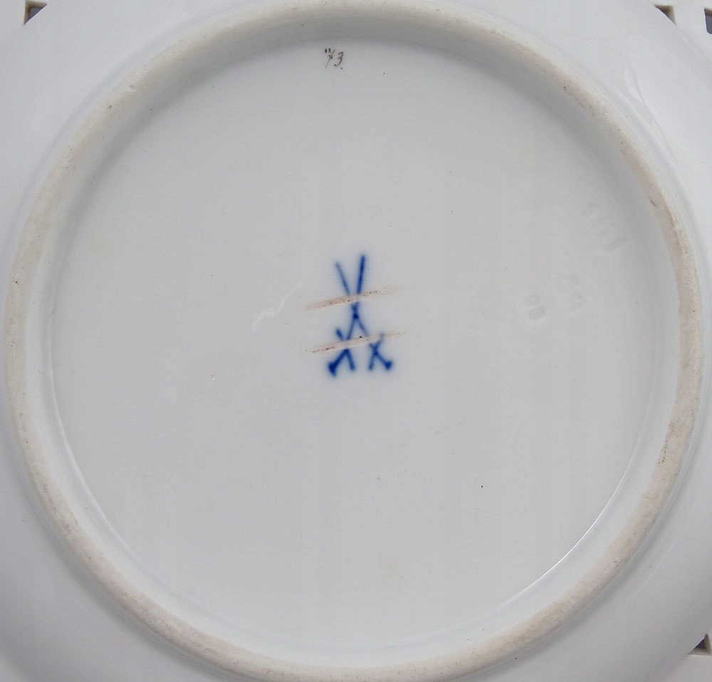 рука -пофарбована та позолочена порцеляна. Пластини, підписані знизу, з точки зору двох схрещених мечів, знак, що використовується в 1850-1924 роках.