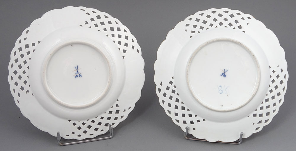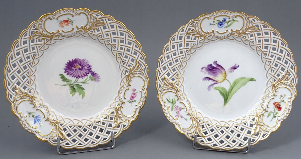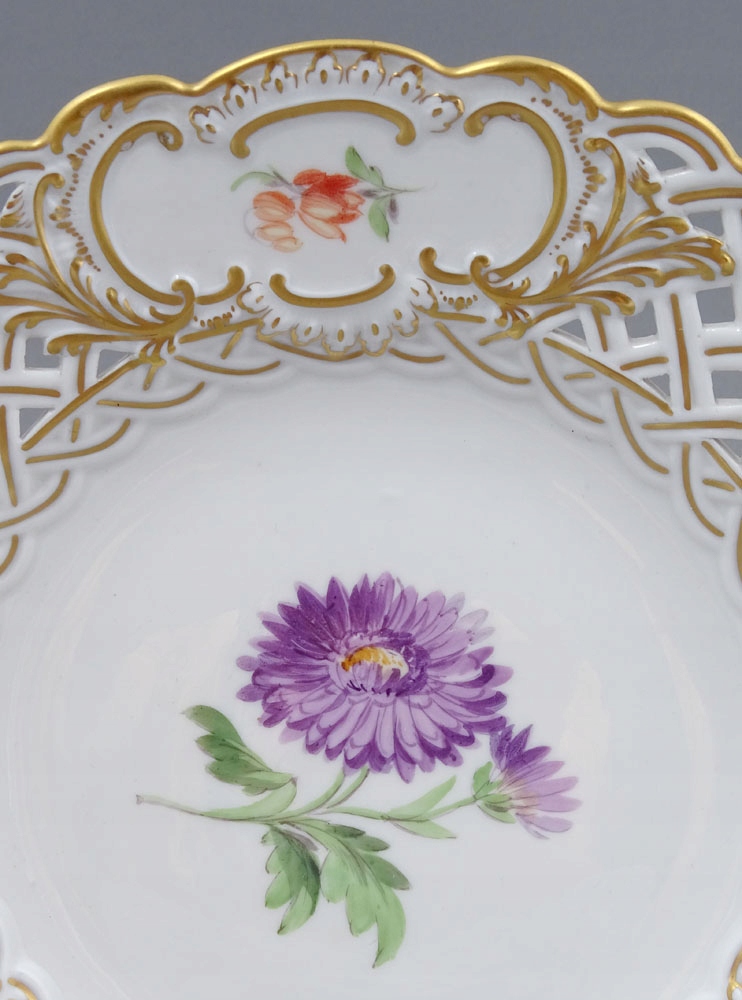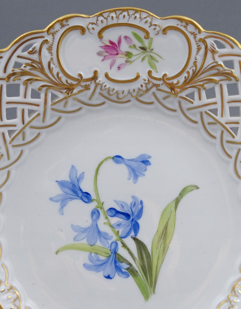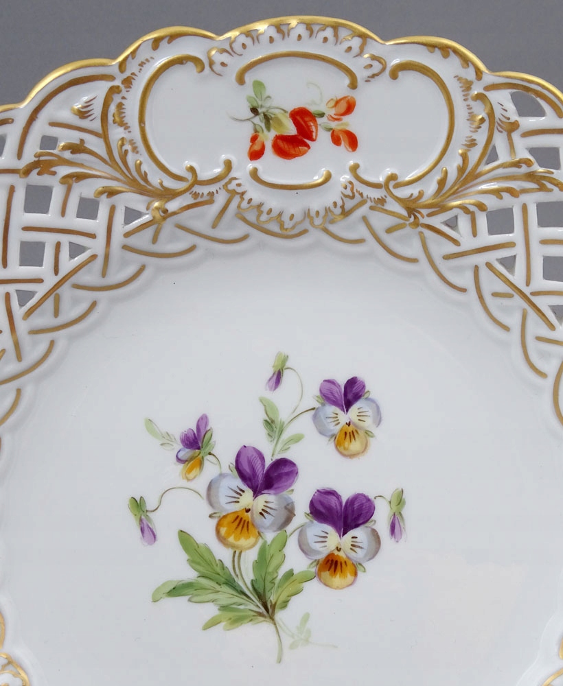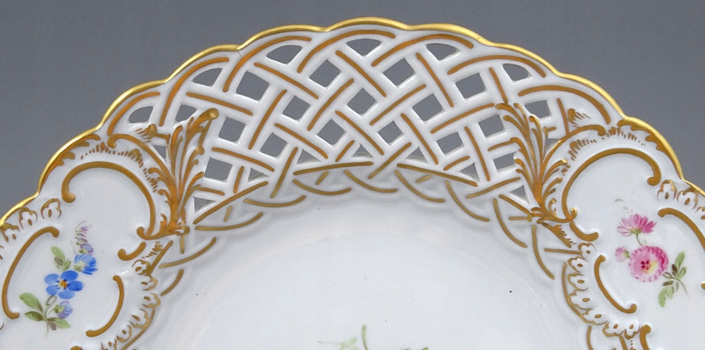 рука -пофарбована та позолочена порцеляна. Пластини, підписані знизу, з точки зору двох схрещених мечів, знак, що використовується в 1850-1924 роках.