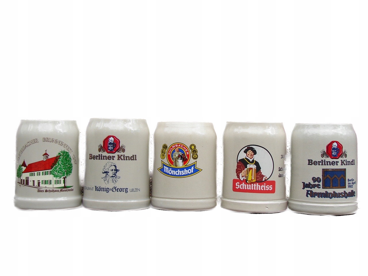 набір з п'яти керамічних кухлів різних німецьких пивоварних заводів.