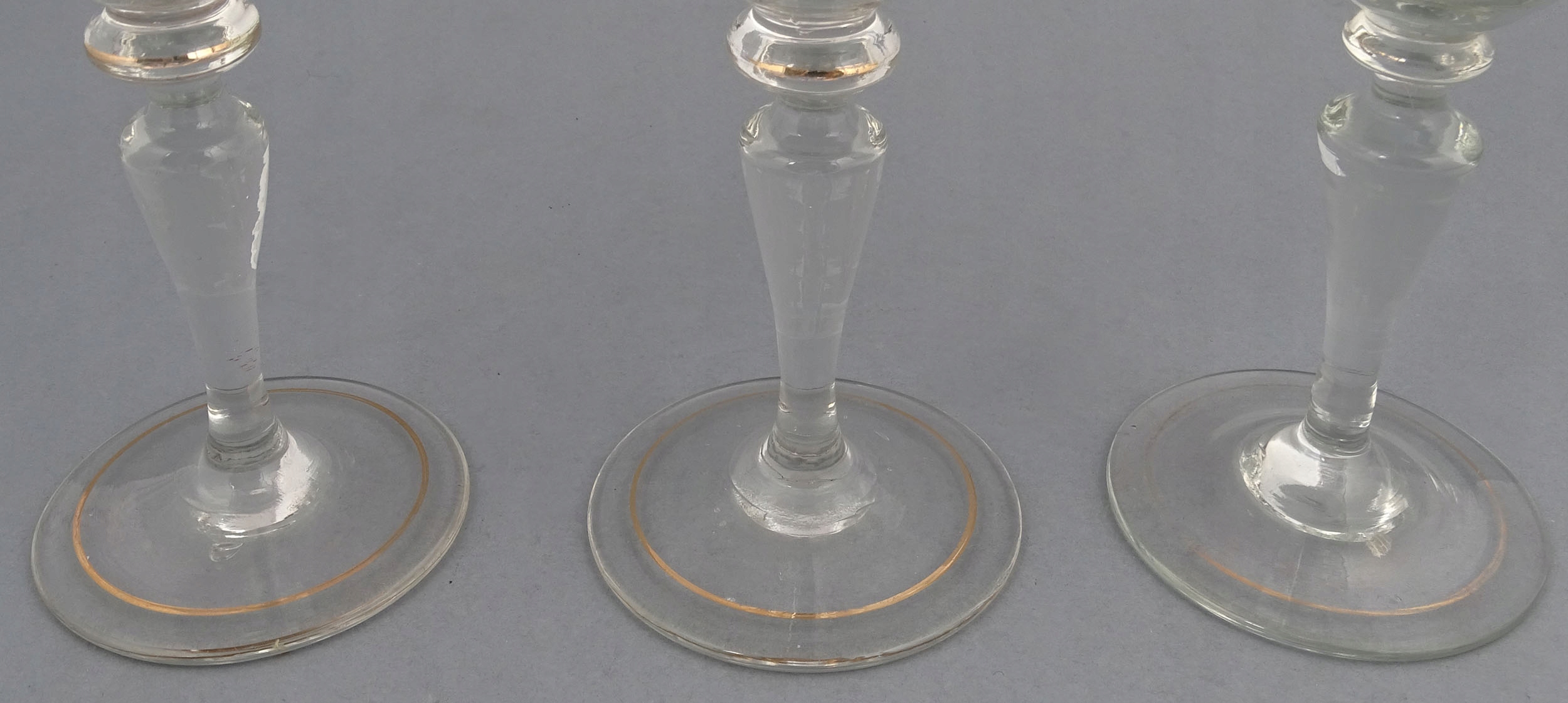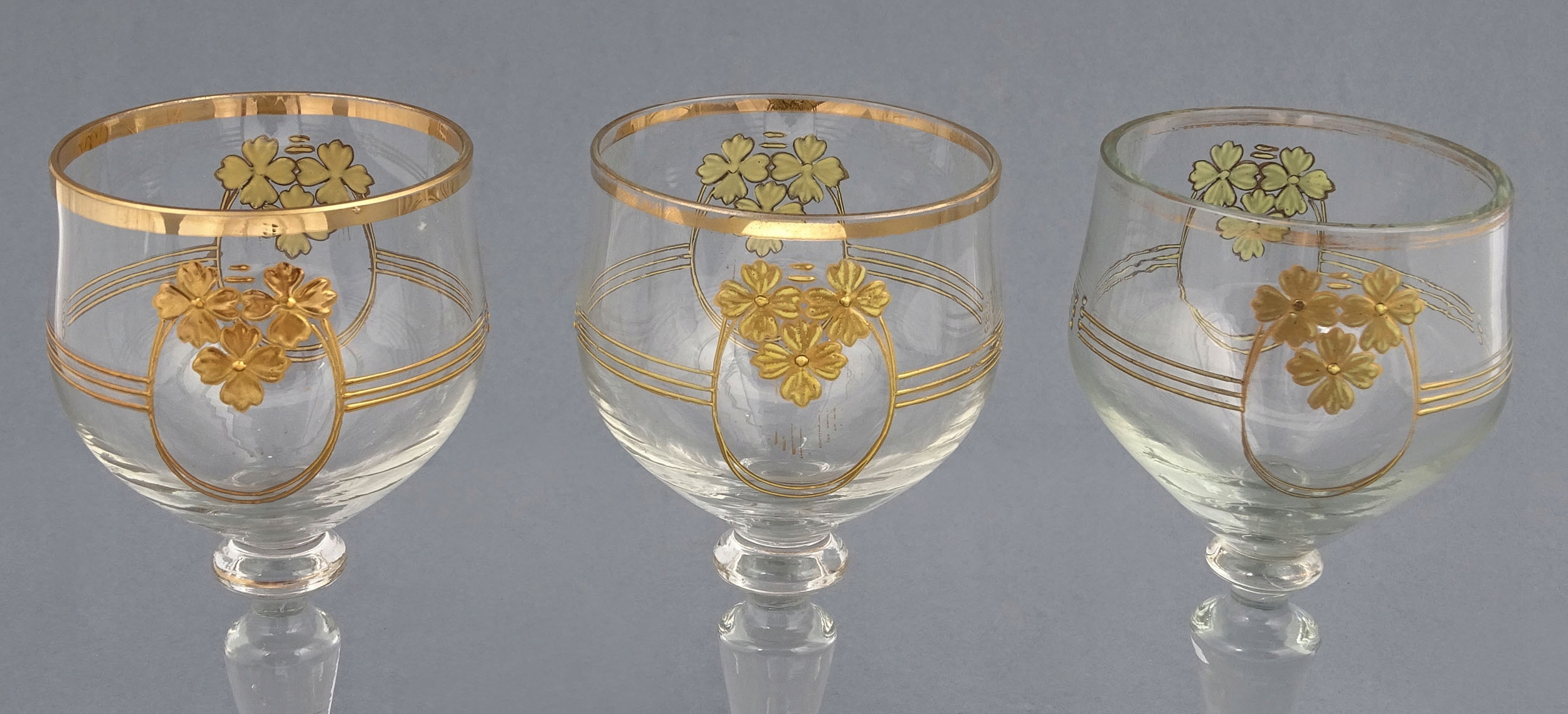 Склянки без пошкоджень. Різні ступені зносу позолоти внаслідок використання.