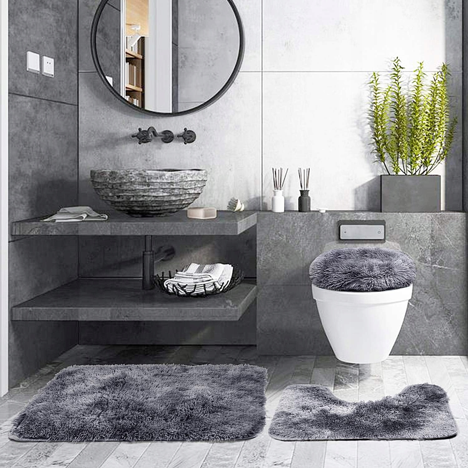 ✅ НАБІР З ТРЬОХ КИЛИМКІВ ДЛЯ ВАННОЇ СІРОГО ХУТРА