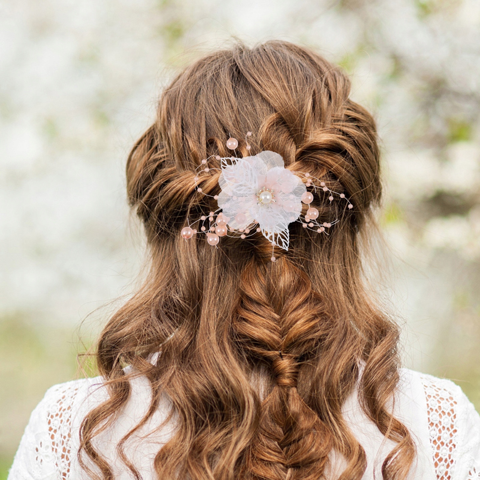 ✅Цей весільний головний убір виготовлений з міцного матеріалу. Він може служити гарною прикрасою, виглядаючи ніжно і добре поєднуючись з різними весільними зачісками та одягом. Ця бічна кліпса виділить вас на вечірці! Вони ідеально підходять для жінок, а цей чудовий аксесуар для волосся чудово підійде для весілля, фотосесії, заручин, дня народження.