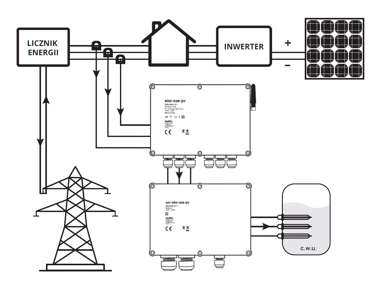 Коли Пристрій розпізнає підвищення напруги, яке може спричинити перевищення рівня, встановленого під час конфігурації, він активує підключений приймач - найчастіше бойлер гарячої води з електронагрівачами. Робота такого приймача створює резистивне навантаження, яке сприяє локальному зниженню напруги.