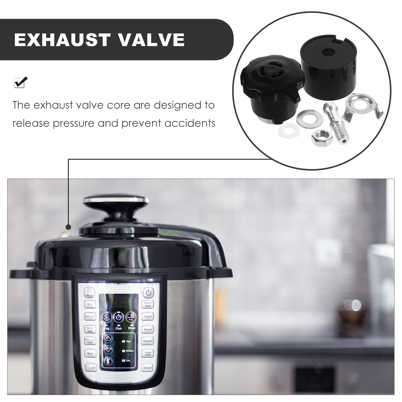 ✅ Попереджувальне формування було розроблено для запобігання тиску клапана тиску залишками їжі, забезпечення безпечного приготування.