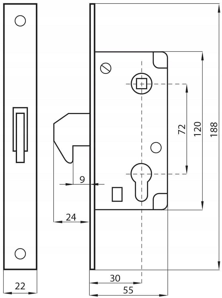 Версія для вставки та стандартної ручки зі шпинделем 8 мм. Його можна монтувати безпосередньо в профіль хвіртки. Він має міцний механізм і надійно виготовлений. Торцева пластина включена,