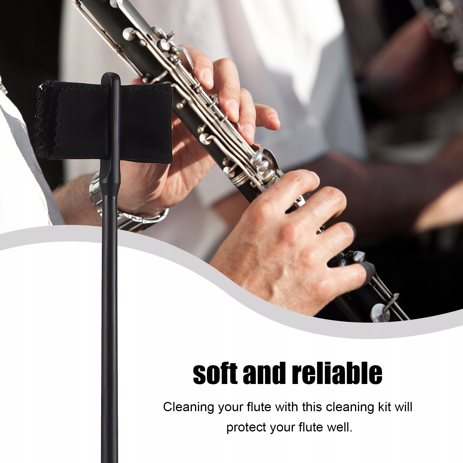 ✅Преміальна якість матеріалу: Цей стрижень для чищення флейти виготовлений з високоякісного пластику, гладка поверхня, він міцний і не пошкодить внутрішню частину флейти. Серветка для чищення виготовлена з якісної тканини, м'яка і надійна. Очищення флейти за допомогою цього набору для чищення добре її захистить.