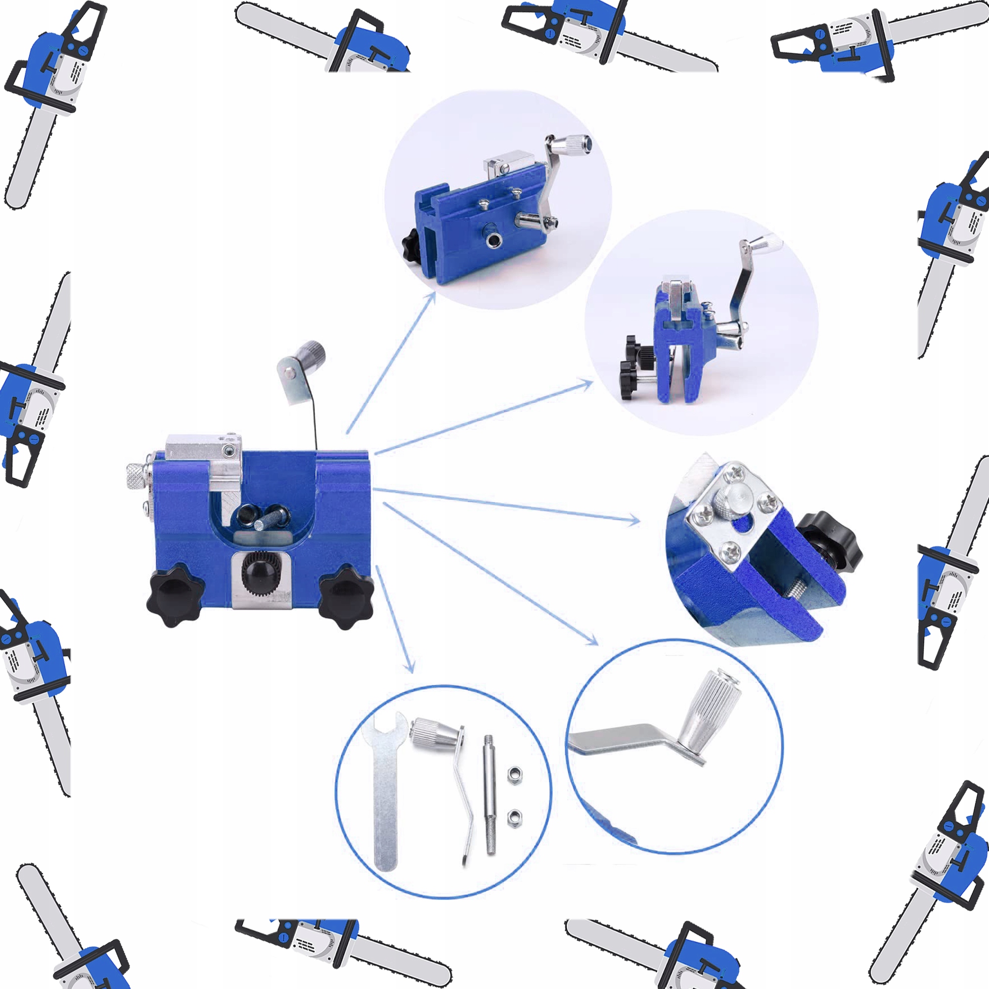 - 5 змінних точилок: У набір входить 5 точилок різного розміру, тож ви можете пристосувати їх до будь-якого типу ланцюга.