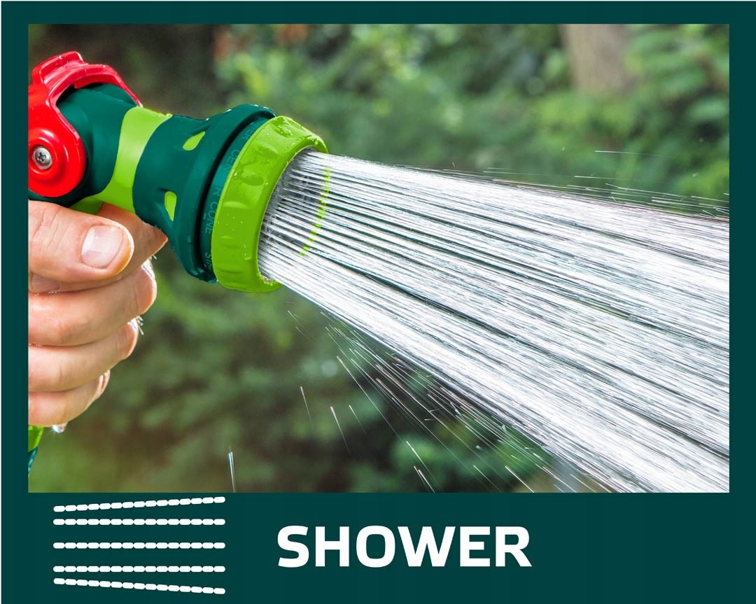 Набір складається з 4 елементів: 8-функціональний спринклер з плавним регулюванням потоку, прохідний з’єднувач 1/2", запірний з’єднувач 1/2" і з’єднувач крана 1/2".