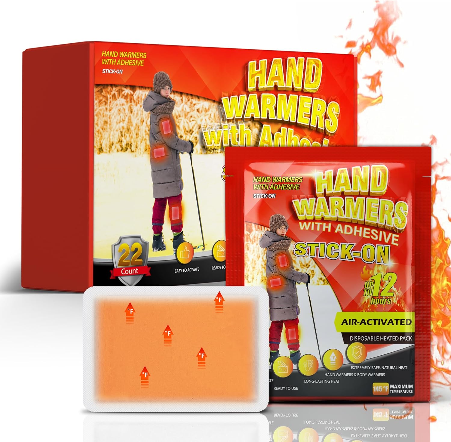 Тепло від голови до п’ят – чи то грілки, грілки для спини, шиї, рук, ніг чи підошв – ми зігріємо вас з ніг до голови. ???? Ідеально підходить для використання на відкритому повітрі - коли погода стає холодною та морозною, ви можете миттєво зігріти своє тіло. Термопрокладки ідеально підходять для активного відпочинку, наприклад, для спортивних ігор, полювання, кемпінгу, походів, катання на лижах, полювання, риболовлі тощо. Одноразові та безпечні - Ці одноразові грілки виготовлені з екологічно чистих інгредієнтів, тому ви можете викидати їх після кожного використання. Вони використовують природне тепло для зігрівання ваших рук і безпечні для дорослих і дітей. ???? Довговічні – наші грілки зберігають ваші руки, ноги та тіло в теплі при середній температурі 58°C, і їх можна використовувати в кишенях або рукавичках, класти у взуття або приклеювати скотчем до спини. Негайне застосування - інтенсивне глибоке тепло для спини, шиї, рук, живота або будь-де, де це необхідно. Відкрийте упаковку, і грілки нагріються автоматично через кілька хвилин. Зніміть захисну плівку зі спини та наклейте її на нижній шар одягу. ???? Довго зберігає тепло - зігріває тіло, зігріваючі пластирі, коли на вулиці холодно, до 12 годин тепла. Прикладіть термопрокладку до найнижчого шару одягу та одразу відчуйте заспокійливе тепло. Кожна коробка містить загалом 22 зігріваючі пластирі.