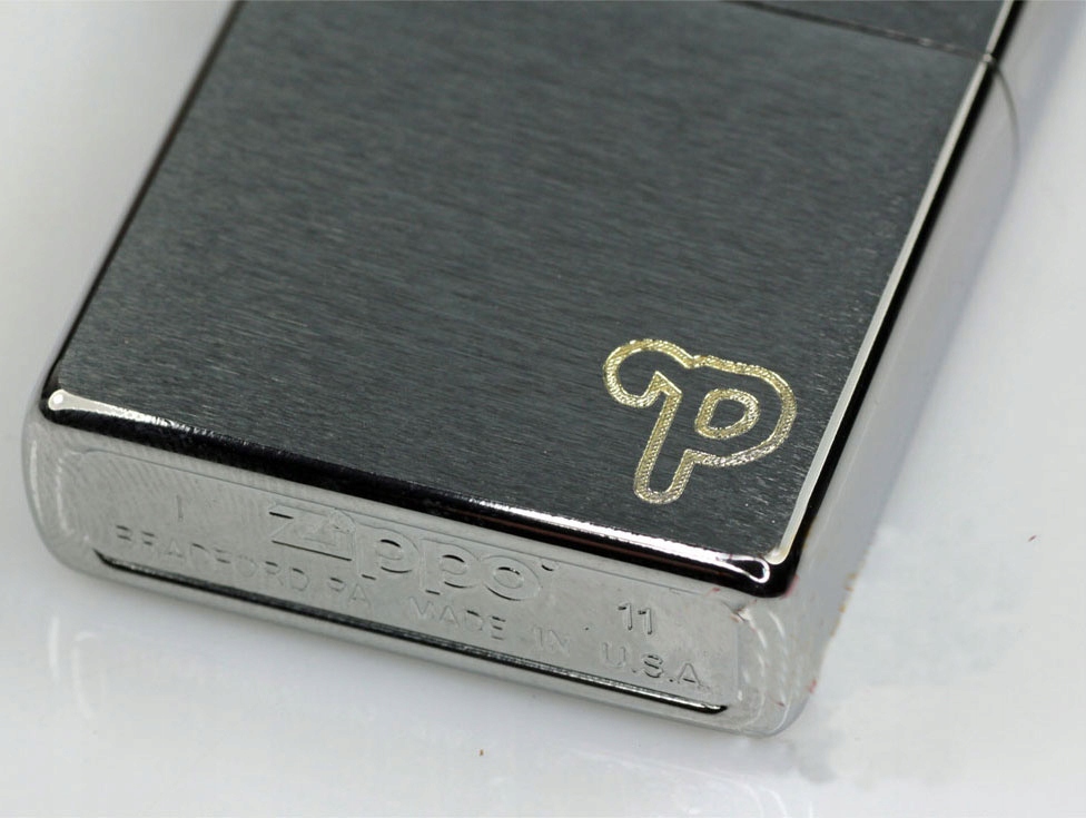 Зроблено тонке механічне гравіювання в кольорі "різьбленого/різьбленого" металу (у срібному або золотому кольорі ) буде дуже міцним (загалом не піддається руйнуванню; він не зношується під час використання запальнички).
