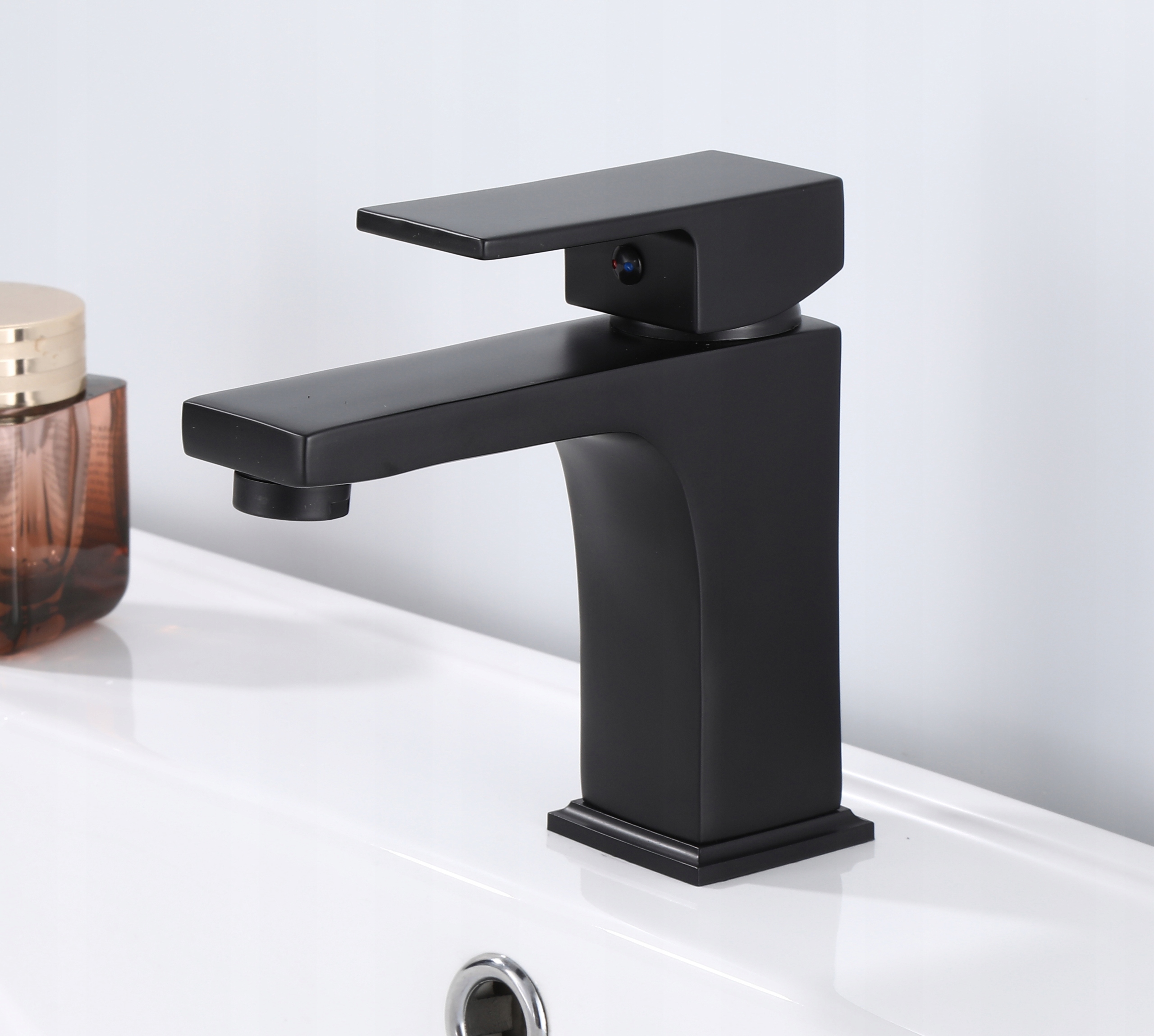Функціональний санвузол з умивальником та ванною. Корпуси змішувачів повністю виготовлені з латуні. Завдяки порошковому покриттю змішувачі довговічні та легко миються.