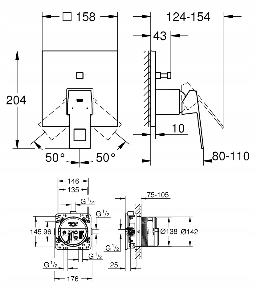 GROHE FastFixation настінна розетка (з ущільненням, закриті кріплення)