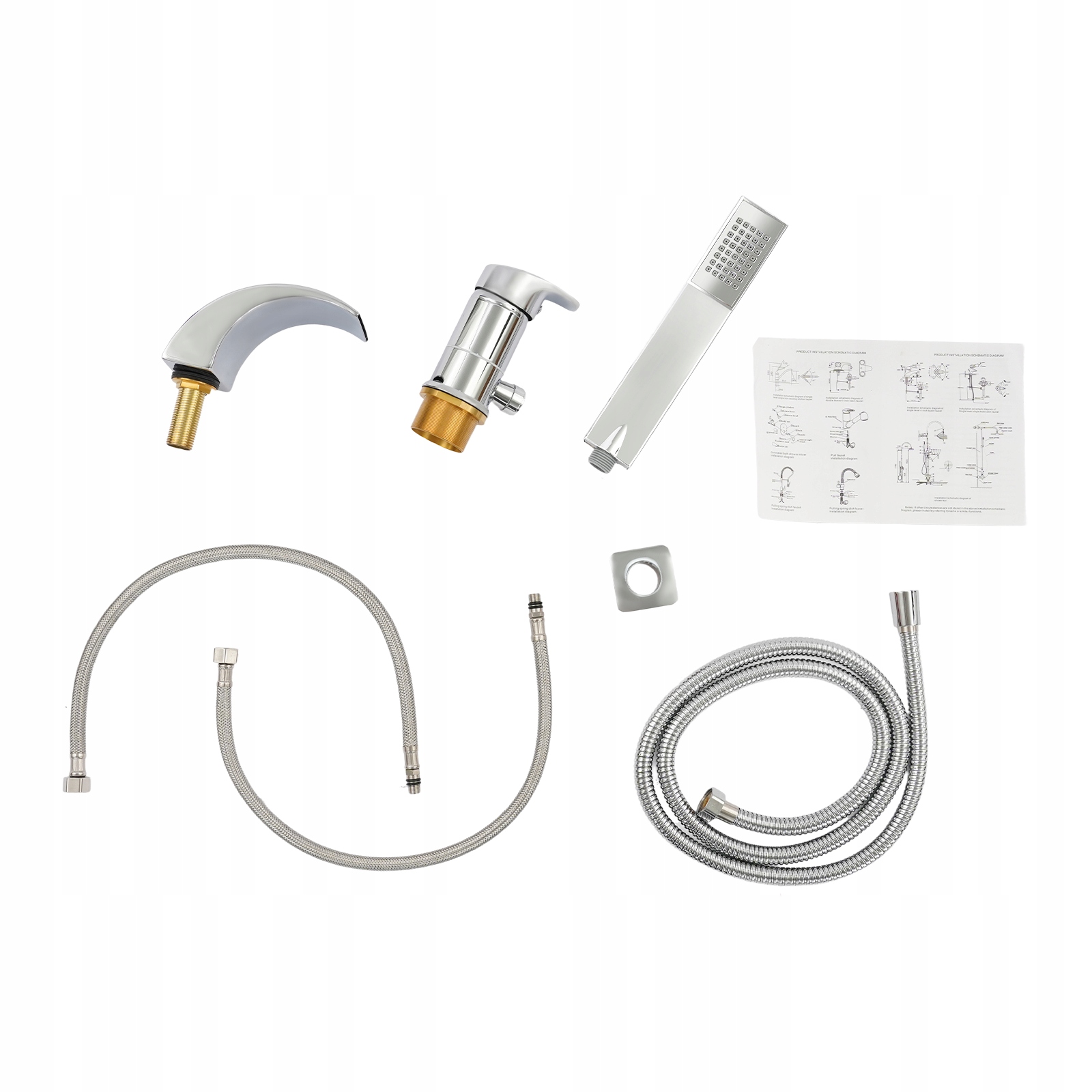 - Універсальний набір: Цей продукт поставляється як повний набір, включаючи ручний душ, кран, змішувач і водопровідні труби. Змішувач має плоский носик, який створює потік у вигляді водоспаду, щоб прискорити наповнення ванни. Ручна душова лійка, оснащена душовим шлангом довжиною 4,92 фута, який можна витягнути, дозволяє легко змити гель для душу та очистити ванну. Змішувач дозволяє зручно регулювати температуру та потік води, а також перемикати вихід води між змішувачем і душовою рукою.