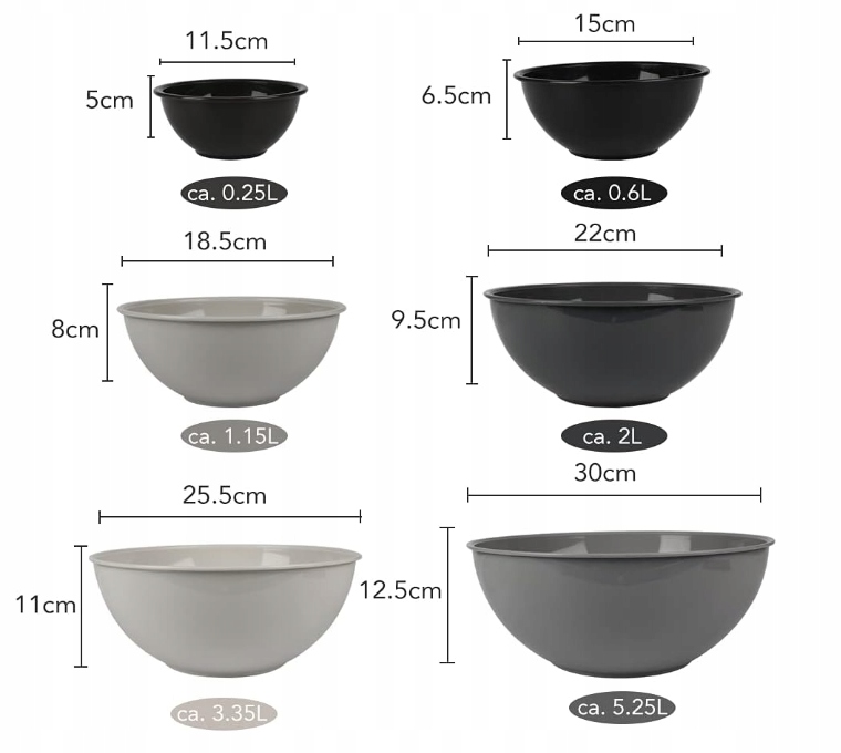 - Кількість штук: 6 миски + 6 кришок