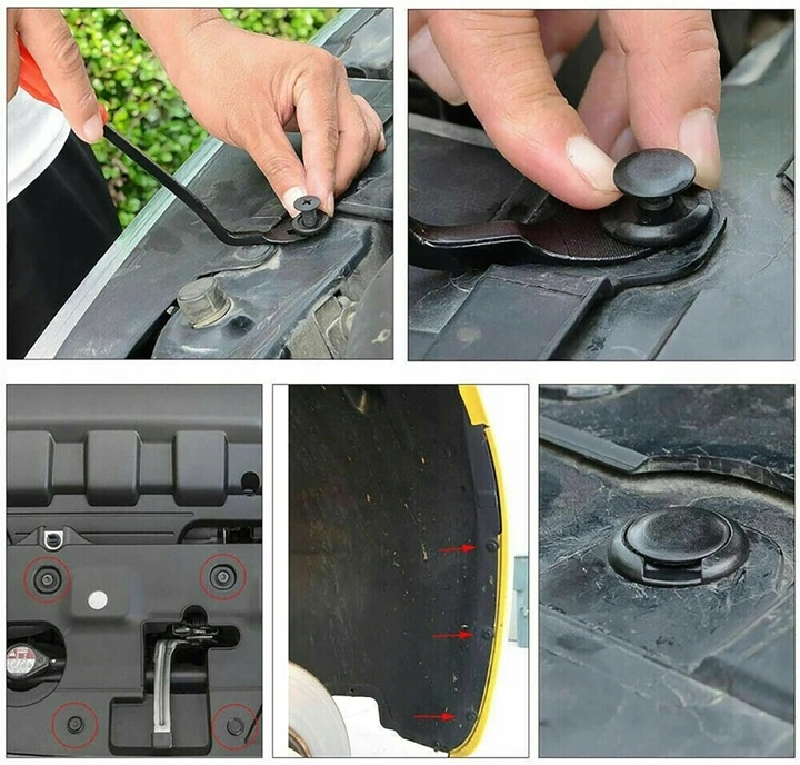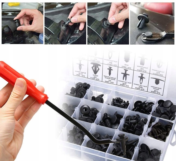 Автомобільні кліпси використовуються для з’єднання окремих частин автомобіля. Ви можете використовувати наш набір для ремонту або заміни таких елементів, як:
