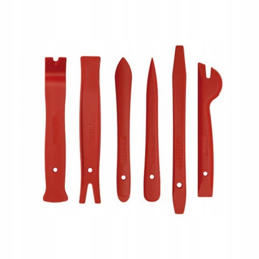 Спеціалізовані знімачі для демонтажу оббивки та молдингів автомобіля. Набір містить шість елементів, які дозволяють швидко зняти оббивку з будь-якого салону автомобіля. Компоненти набору виготовлені із загартованого нейлону. Вони мають спеціальні профілі, що дозволяють використовувати важелі для демонтажу шпильок оббивки. Великою перевагою цього комплекту є те, що він не викликає подряпин на оббивці та пофарбованих елементах. Це значно впливає на підтримку належної естетики автомобіля.