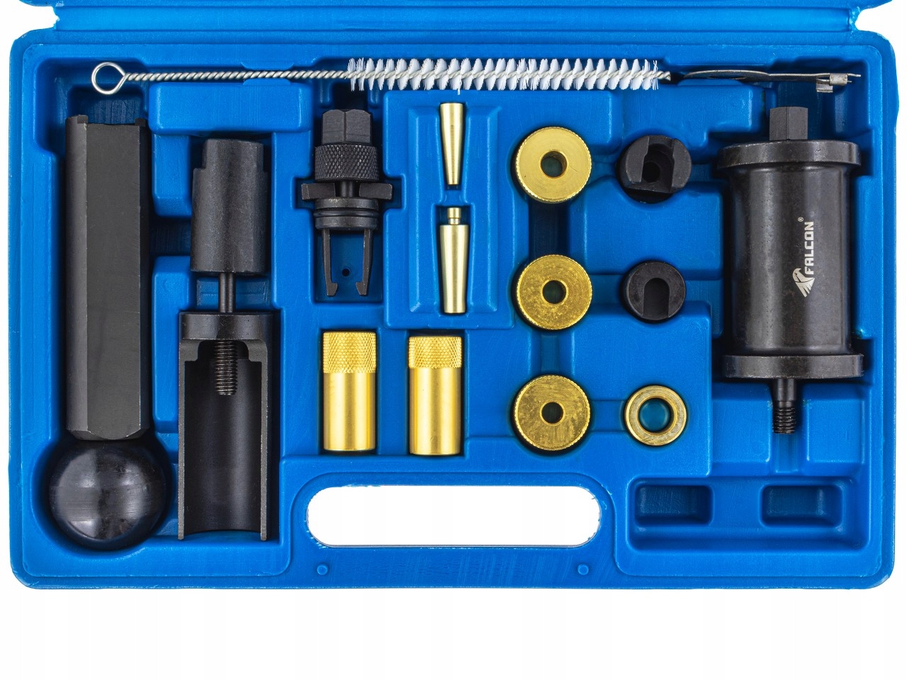 Завдяки багатому комплекту аксесуарів інструмент можна використовувати для багатьох двигунів Audi і VW. Високоякісний знімач підходить для таких агрегатів FSI: 1.4, 1.6, 1.8, 2.0, 2.7, V6, 3.0, V6, 3.2 V6, 3.6 V6 і 4.2 V8. Зняття форсунок дуже ефективне, і навіть застряглі частини можна послабити завдяки ковзаючим молоткам. У комплект також входять монтажні конуси і калібрувальні втулки для установки прокладок камери згоряння, а також штифт для кріплення форсунок FSI.