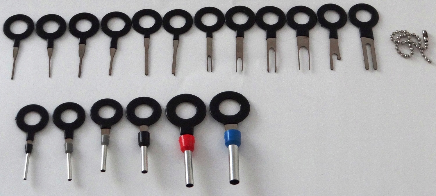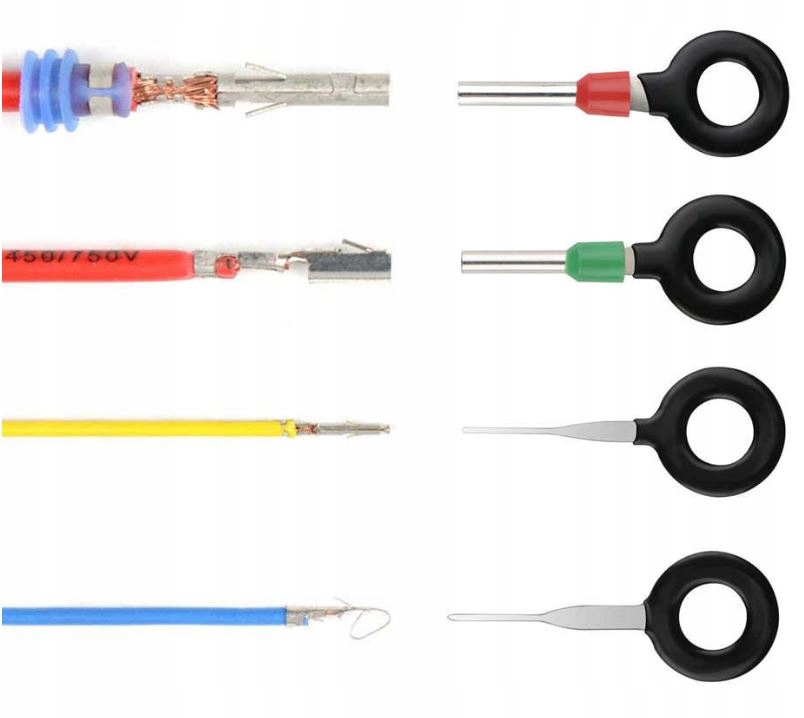 Він також містить необхідні трубчасті виштовхувачі до 6 розмірів! (діаметри 2 - 6,2 мм), що робить набір універсальним набором для ремонту будь-якого типу джгутів.
