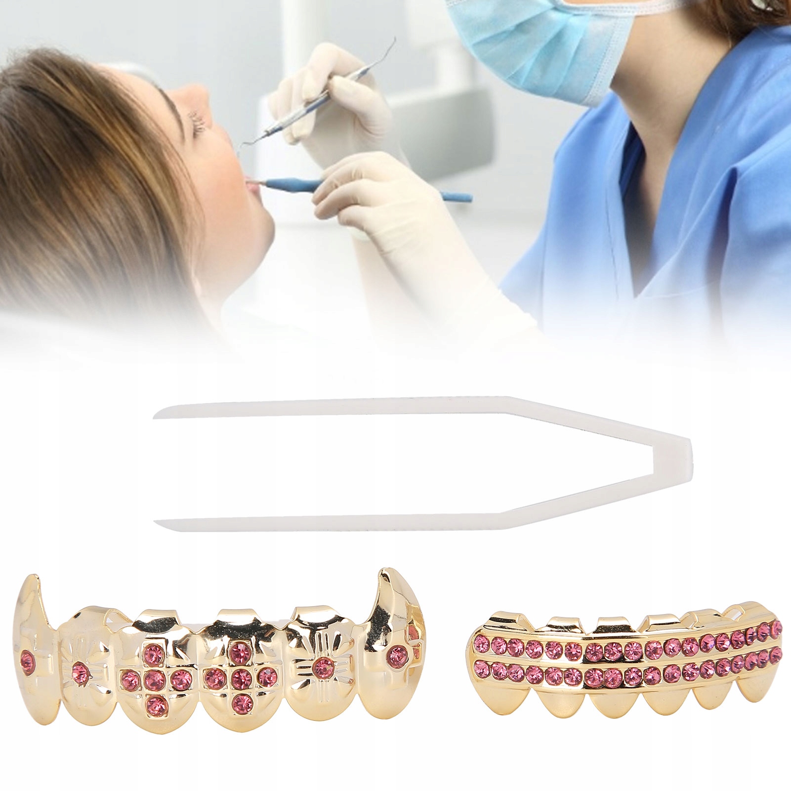 1. Дуже комфортно, просто покладіть його прямо на зуби, легко розбиратися, легко зберігати. Він виготовлений з високоякісних матеріалів і покрита латунь, завдяки якому він не змінює колір, він здоровий і безпечний. Особливо підходить для заходів на Хеллоуїн, хіп-хоп-шоу, концерти, подарунки на день народження, придатні для людей, які люблять елементи хіп-хопу. Унікальний вигляд, як правило, виглядає модний і вишуканий, підходить для різних випадків. Доступний набір інструментів, який відповідає різним потребам, є практичним для використання.
