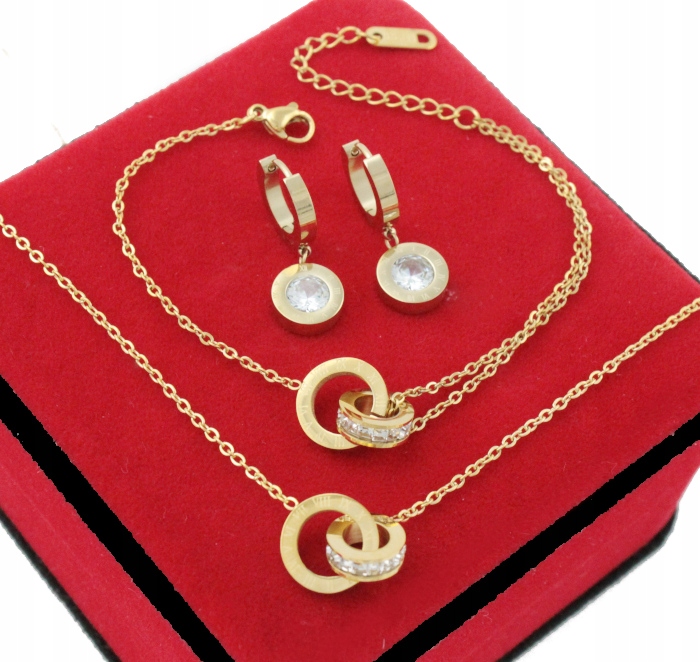 НАБІР ЗОЛОТО 3 ШТ. КІЛЬЦЕ ЦИРКОНІЙ СТАЛЬ 316 Л