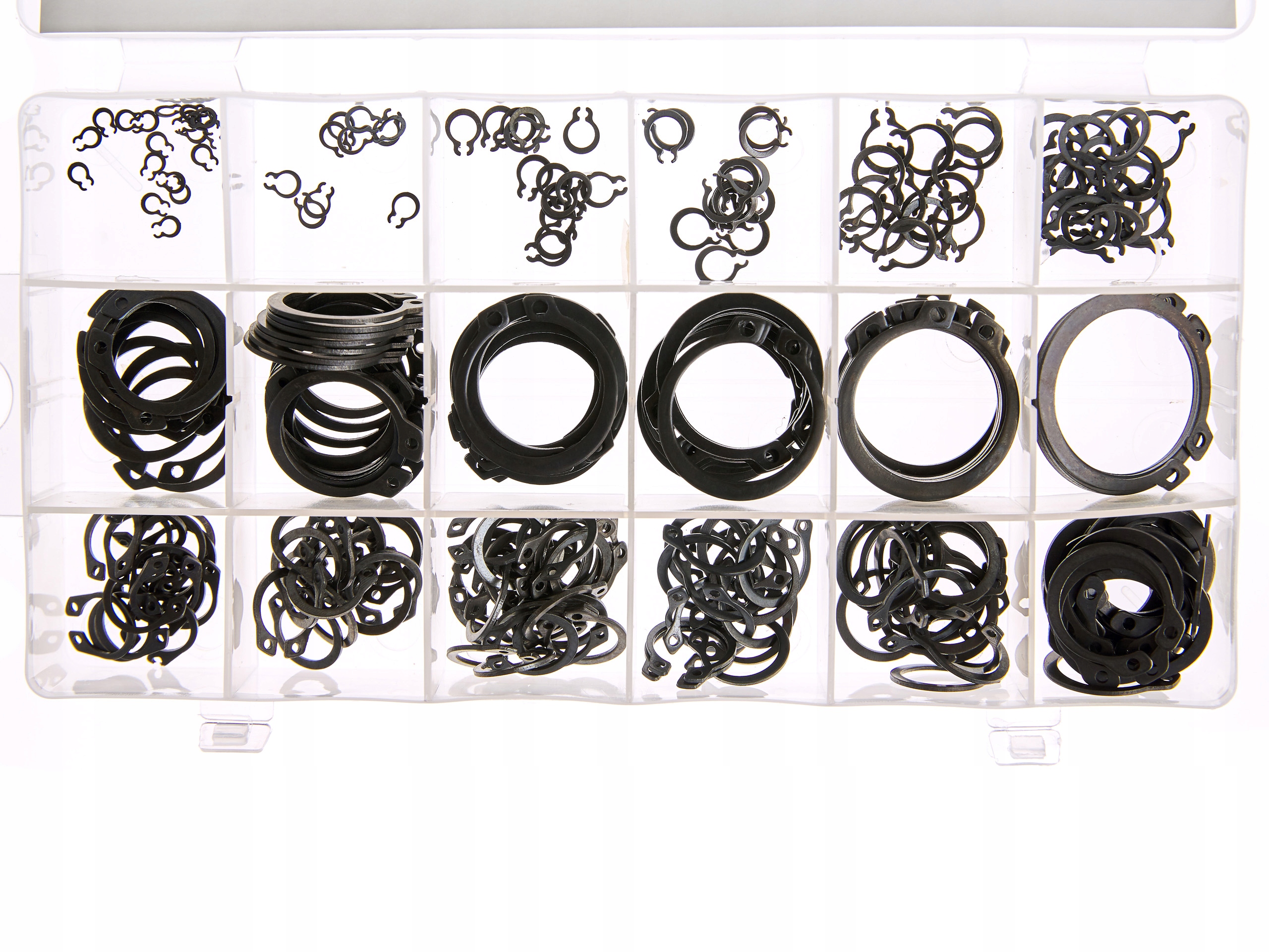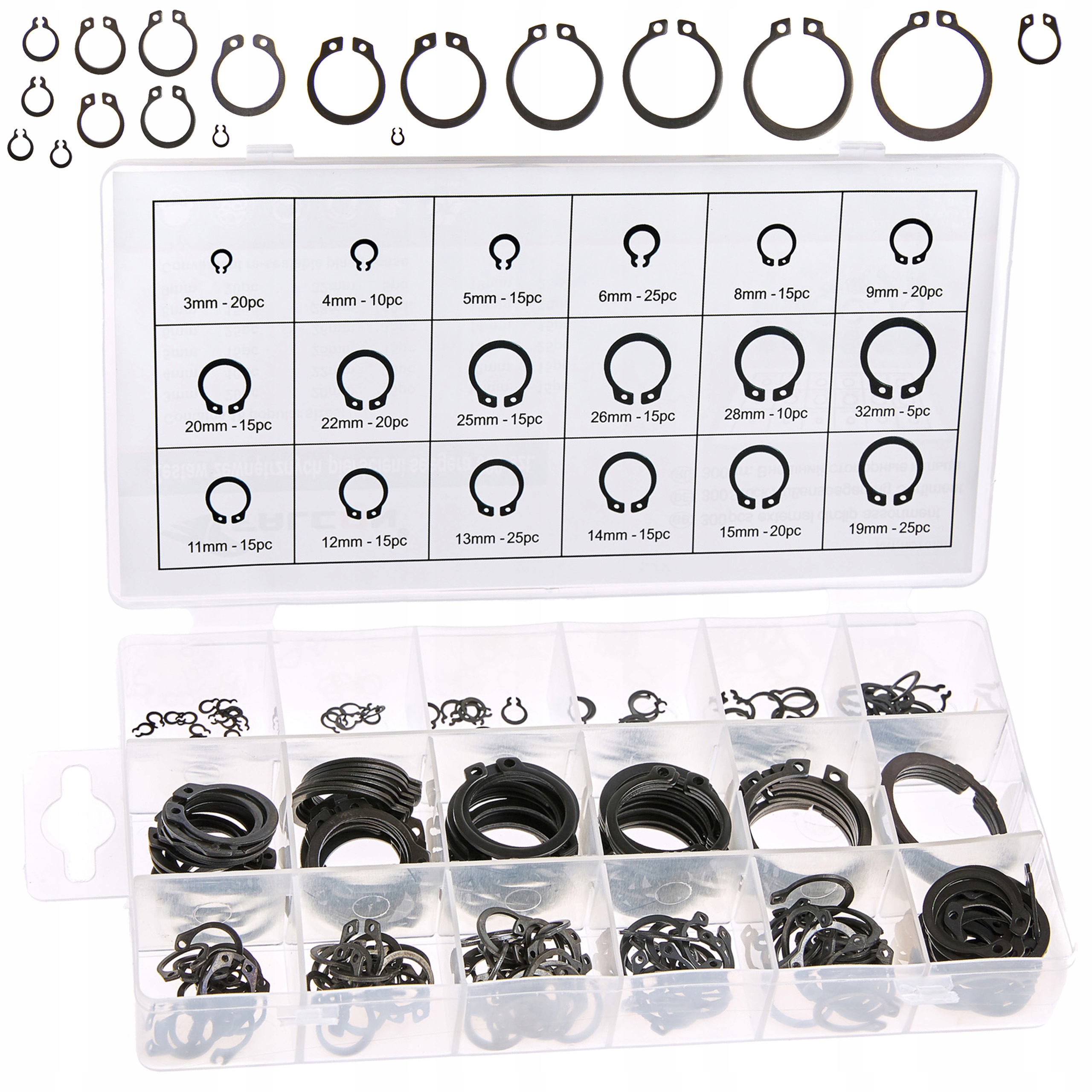 Набір із 300 зовнішніх кілець. Кільця добре тримаються і виготовлені з довговічної еластичної сталі. Різноманітність розмірів у наборі дає впевненість, що ми знайдемо правильний, необхідний розмір. Набір використовується у кожному професійному майстерні.